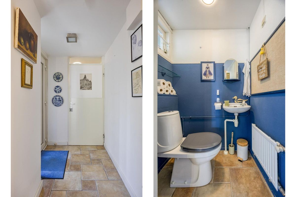* Hal met toilet met fonteintje, trapopgang naar 1e verdieping, meterkast en toegang tot de woonkamer;