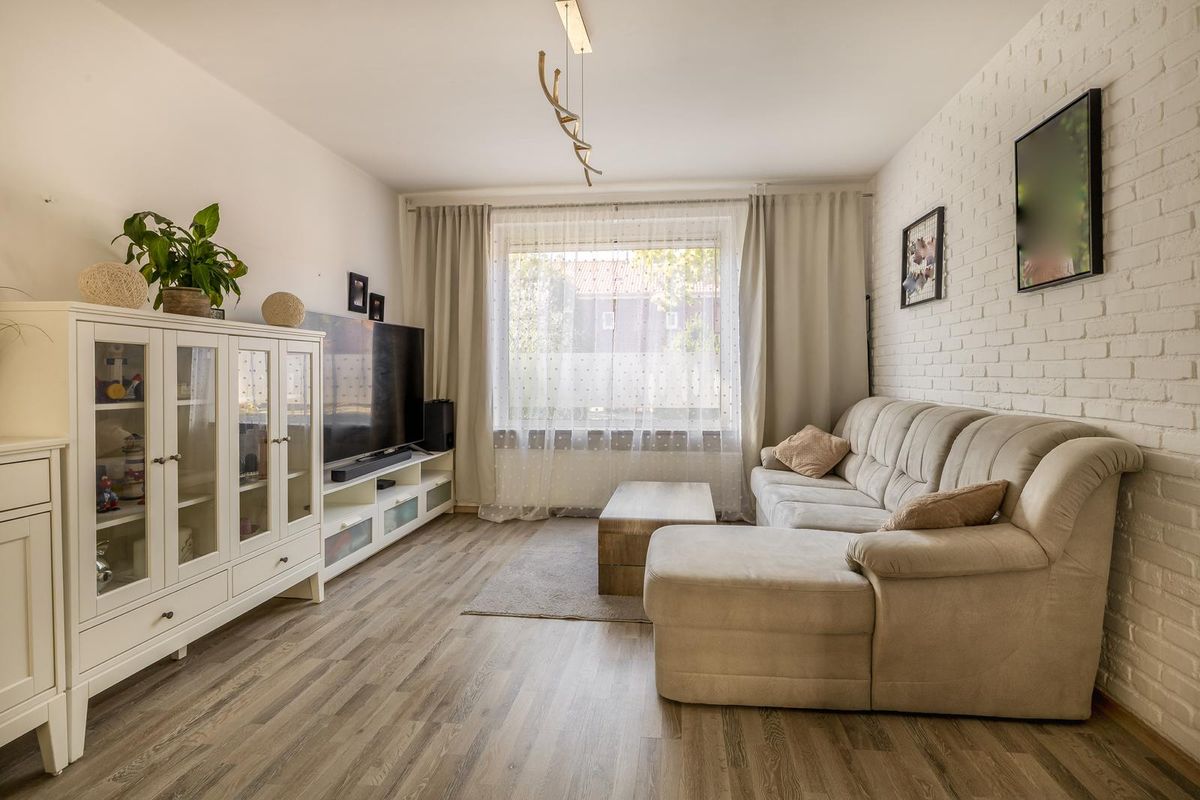 Je betreedt de woning via de hal met tegelvloer, trapopgang en een modern toilet. De lichte woonkamer (ca. 23m²) met laminaatvloer is een fijne plek om samen te komen. De halfopen keuken (ca. 4m²) is prima ingericht en voorzien van diverse inbouwapparatuur, waaronder een gasfornuis, afzuigkap, koelkast, vaatwasser en combi oven/magnetron. Vanuit hier is de provisie-/waskelder bereikbaar.
