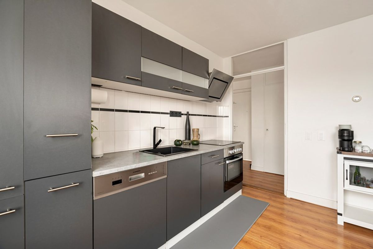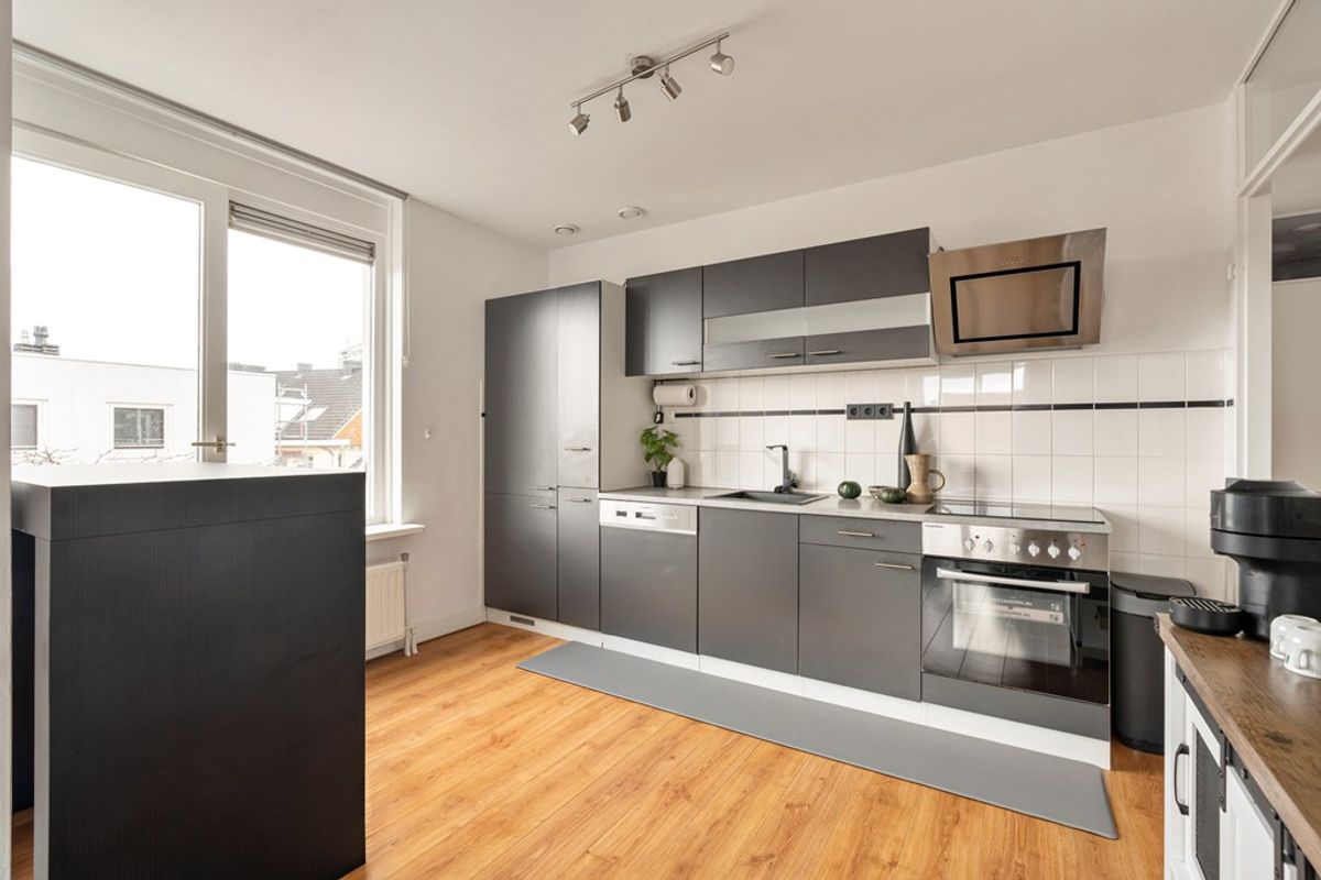 Bij binnenkomst valt direct de ruime en lichte woonkamer op, wat zorgt voor een prettige natuurlijke lichtinval. De moderne open keuken (vernieuwd in 2021) is uitgevoerd in een eigentijdse stijl en voorzien van alle benodigde inbouwapparatuur – perfect voor wie graag kookt en gasten ontvangt.
