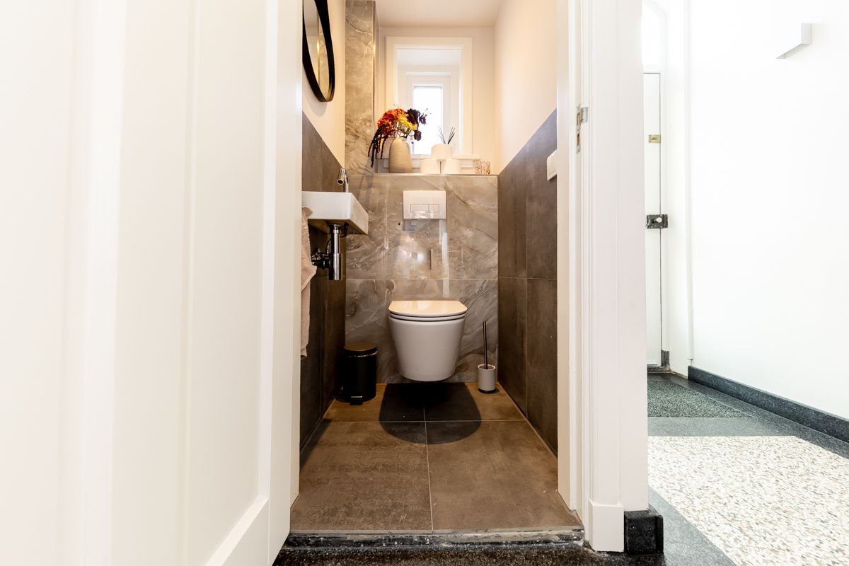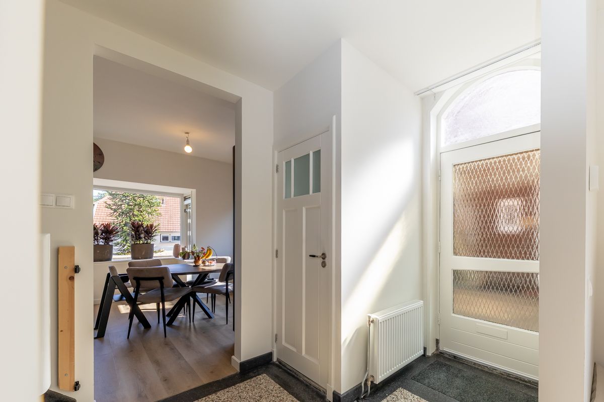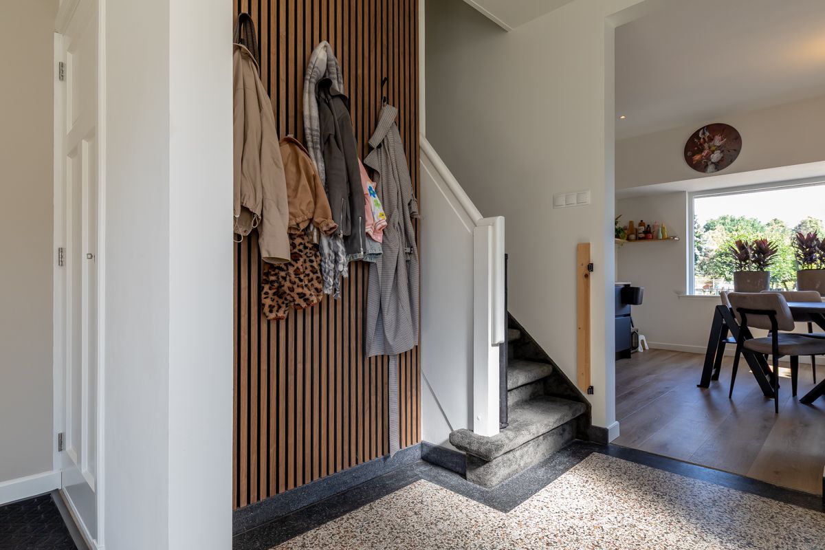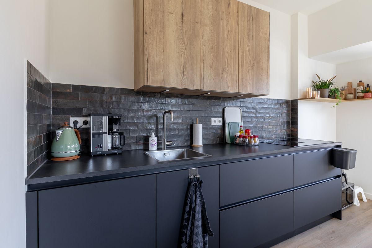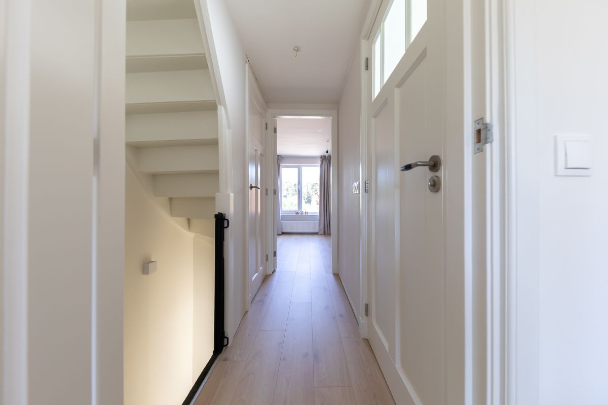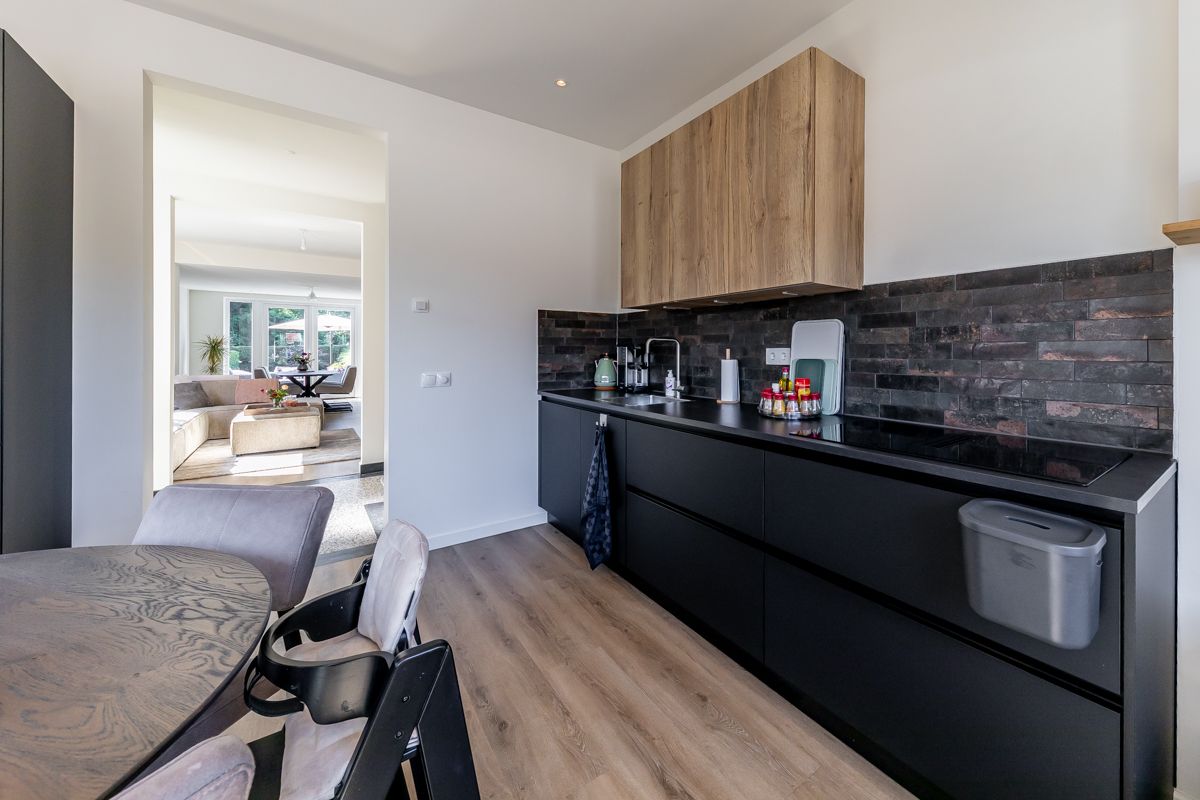 Aan de rechterzijde van de hal bevindt zich de moderne keuken (2024/2025) met luxe inbouwapparatuur: vaatwasser, afzuigkap, koelkast, vriezer, inductiekookplaat en combi-oven.