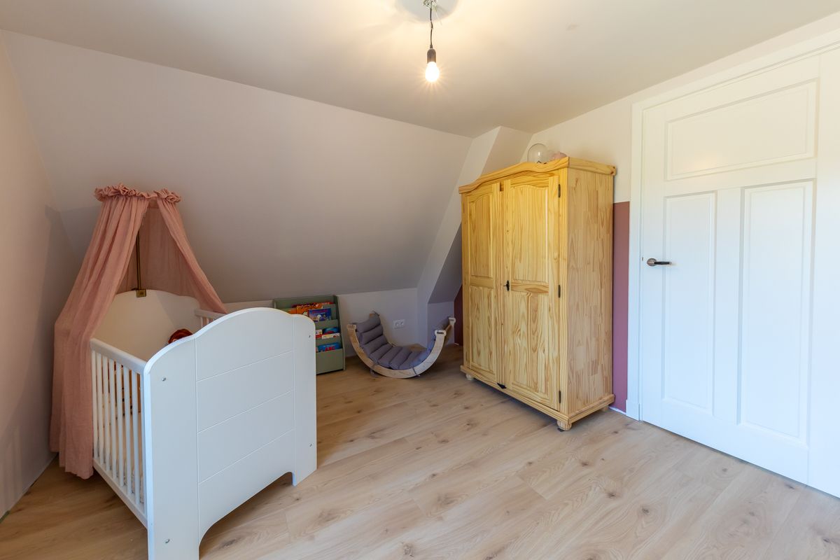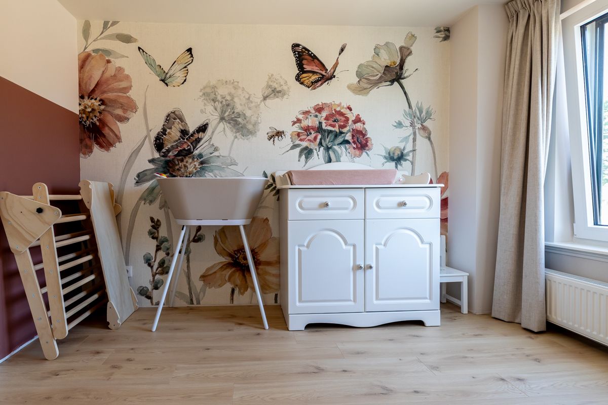 Op de eerste verdieping bevinden zich twee slaapkamers en een moderne badkamer (2024/2025) met douche, toilet, dubbele wastafel en elektrische vloerverwarming.