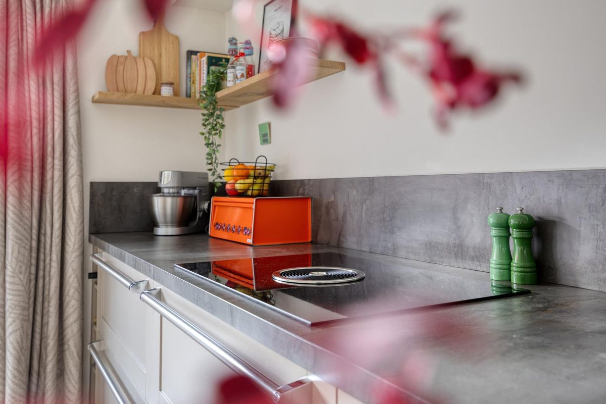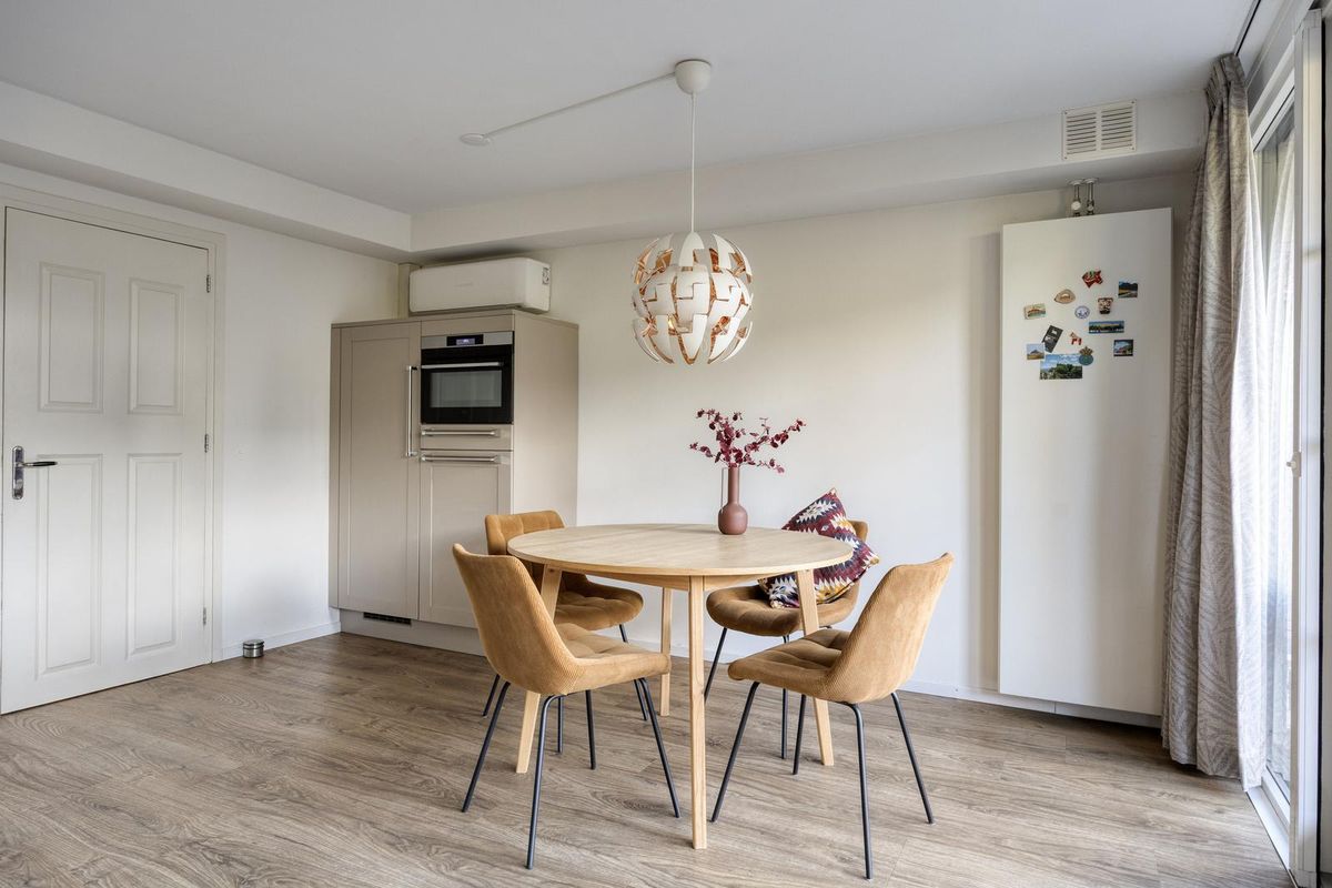 Aan de achterzijde ligt de sfeervolle woonkeuken met openslaande deuren naar de tuin. De keuken is voorzien van diverse inbouwapparatuur, waaronder een combi-oven, Bora inductie downdraft, vaatwasser, koelkast en vriezer. Op de begane grond is ook een airconditioning aanwezig die zowel koelt als verwarmt.