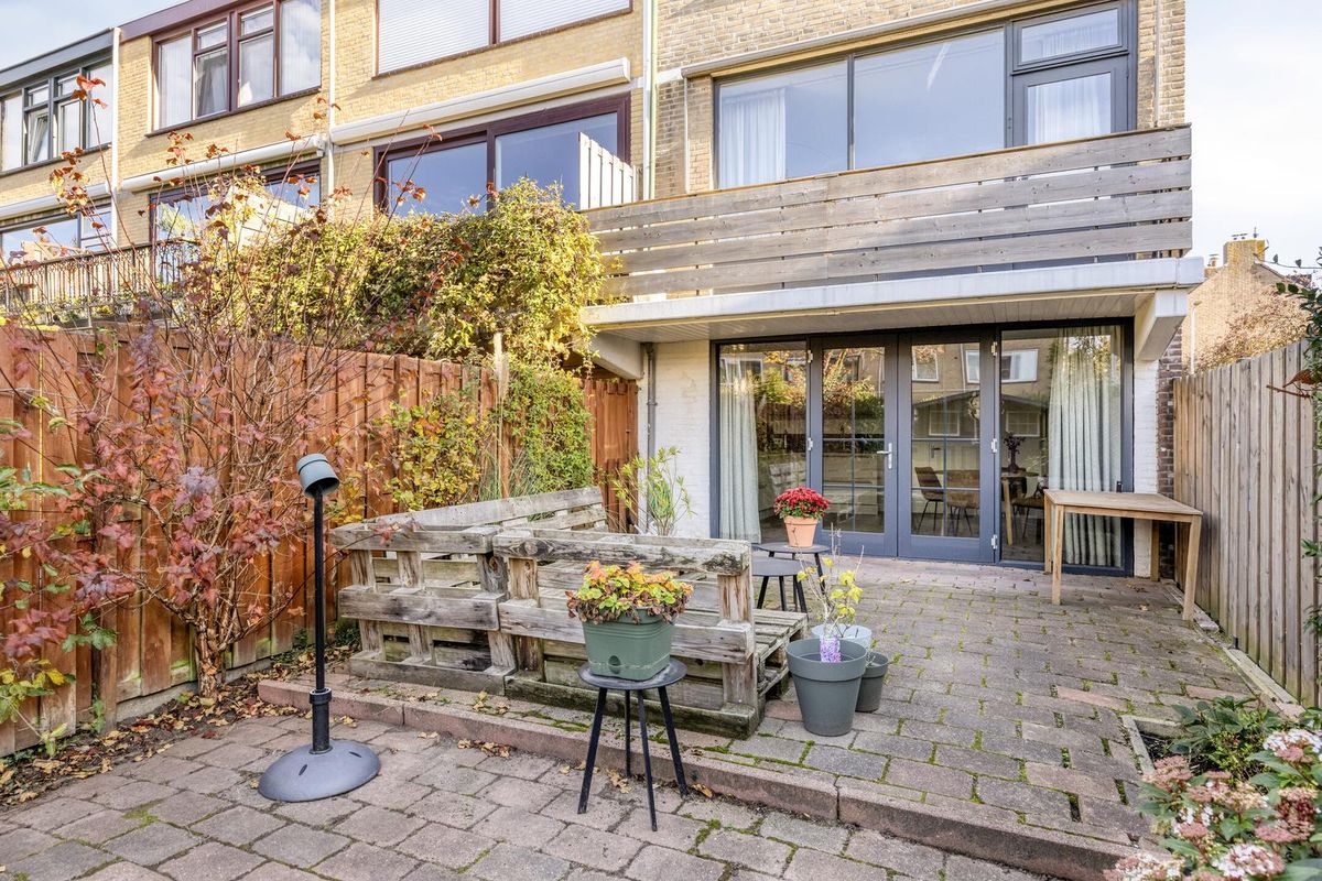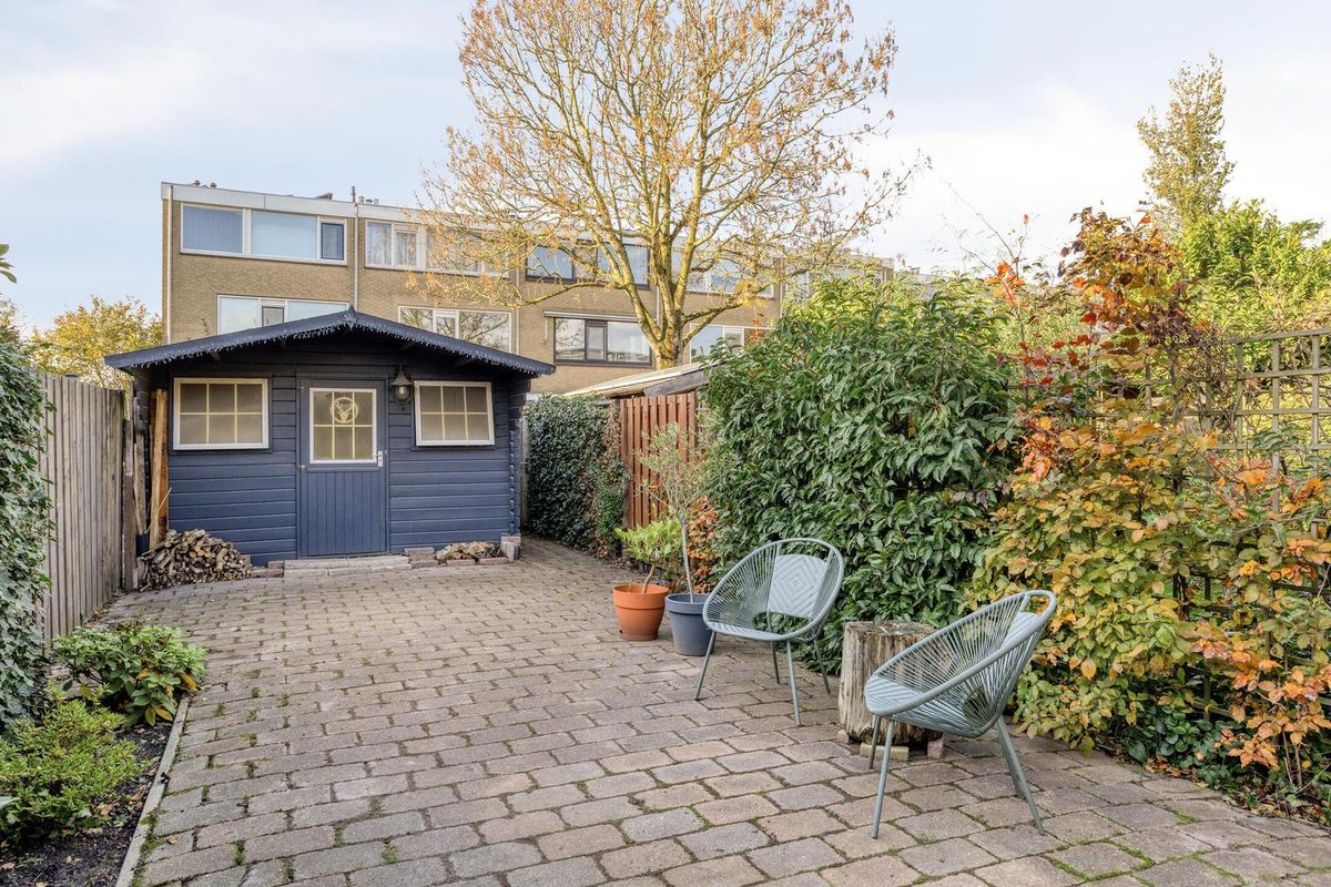 De fraai aangelegde achtertuin, gelegen op het westen, is maar liefst 18 meter diep. Dankzij de ligging geniet je hier optimaal van de middag- en avondzon. De tuin beschikt over een berging met elektra en een handige achterom.