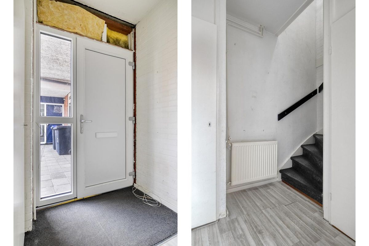 Op de begane grond zien we eerst een eigen berging en parkeerplaats dus nooit meer zoeken naar een plekje. Je hebt je eigen entree/hal met meterkast, bergkast en trapopgang.