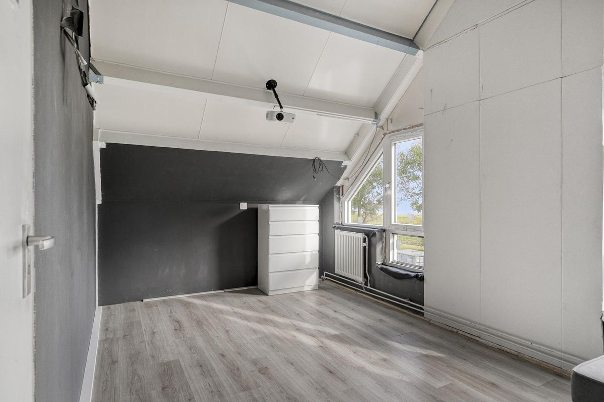 Een vaste trap leidt ons naar de tweede verdieping. Daar vinden we op de overloop de technische ruimte met cv-ketel en de mechanische ventilatie. Er is een badkamer met wasmachineaansluiting, een inloopdouche en wastafelmeubel. Op deze verdieping treffen we ook 2 slaapkamers aan waarvan de achterste een fraai uitzicht heeft over het Haringvliet. Dat is lekker wakker worden!