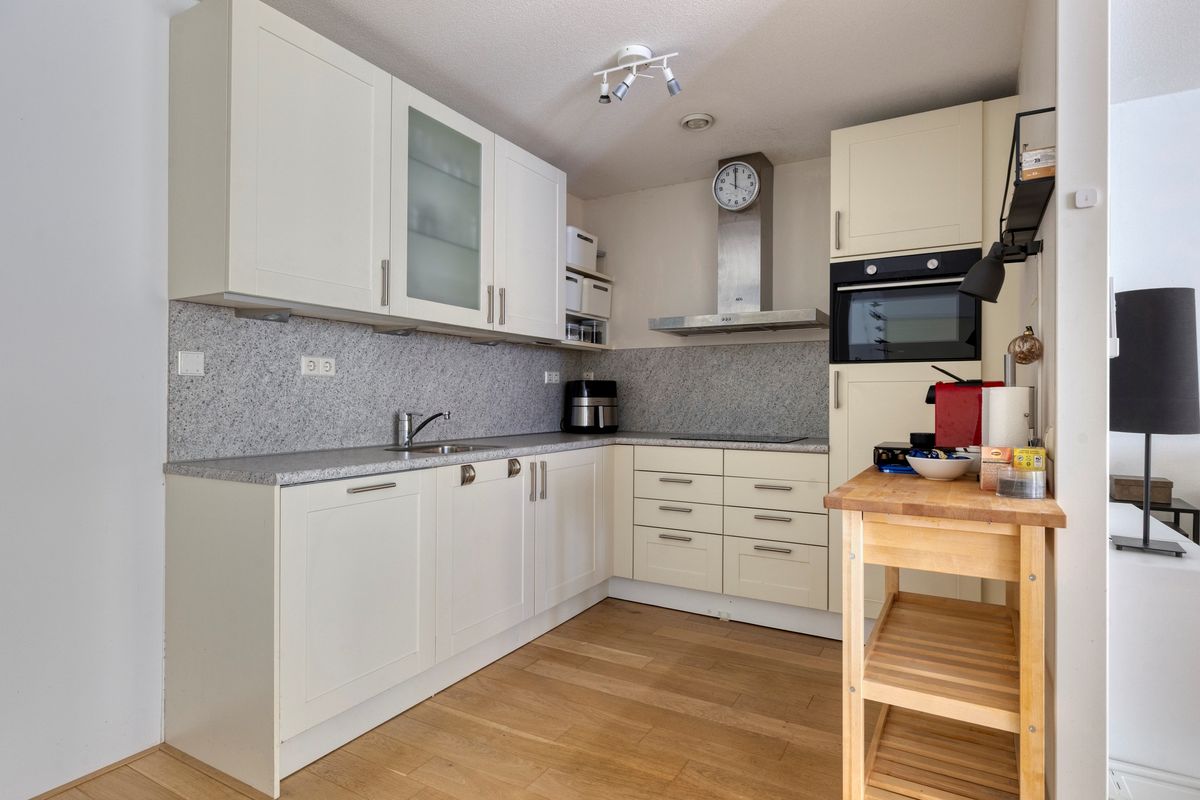 De half open keuken is uitgevoerd in lichte kleuren en voorzien van een contrasterend werkblad, een inductiekookplaat, afzuigkap, combi-oven, vaatwasser en koelkast. In de bijkeuken is naast de CV en ventilatie ook extra ruimte voor een vriezer en meerdere staande kasten. Alles is dus binnen handbereik vanuit de keuken, en u heeft verbinding met de woonkamer - perfect voor wie graag kookt én contact houdt met gasten.