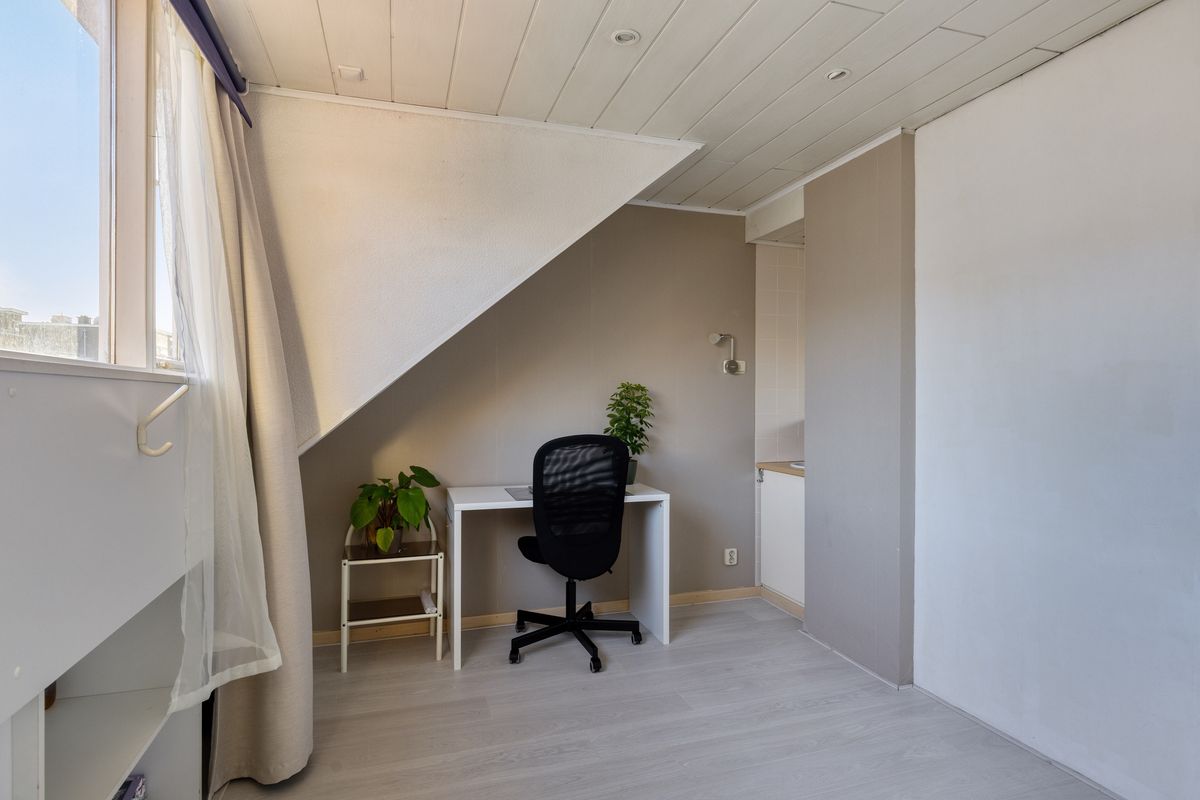 Boven de tweede verdieping bevindt zich een verrassend ruime zolder van ca. 20 m² vloeroppervlakte. Deze verdieping is nu bereikbaar via een aluminium schuifbare trap, maar biedt uitstekende mogelijkheden om te worden uitgebreid met een vaste trap en een dakkapel aan de achterzijde. Daarmee creëert u eenvoudig een extra slaapkamer, werkruimte of atelier.
