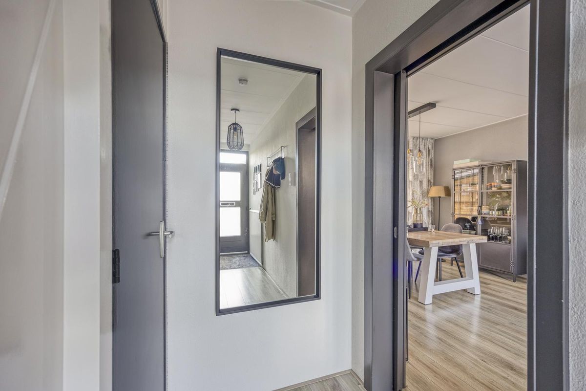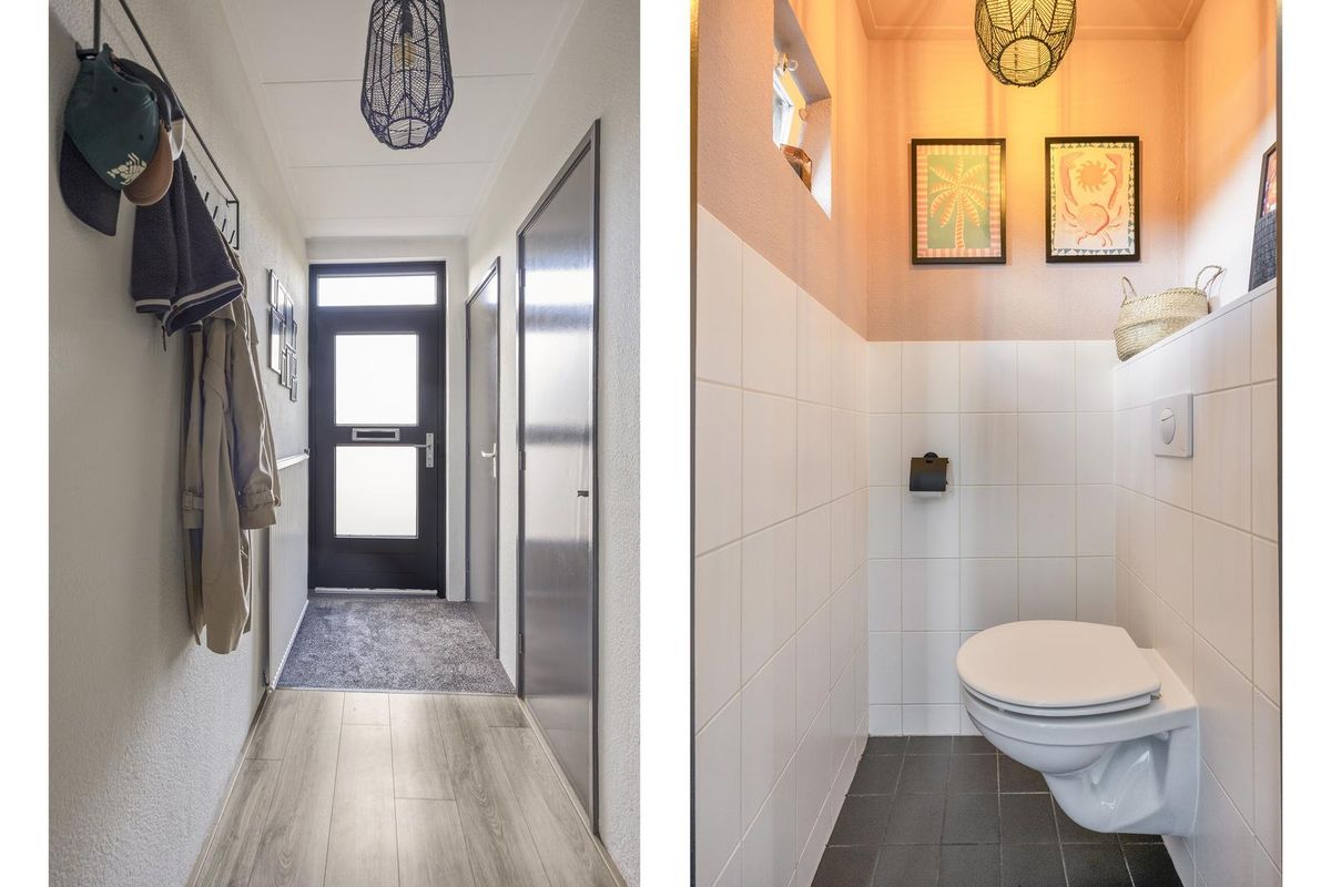 Bij binnenkomst kom je in de hal, met toegang tot het toilet, de meterkast, handige opbergkast en de trapopgang. Via een mooie en ruimtebesparende schuifdeur bereik je de woonkamer.
