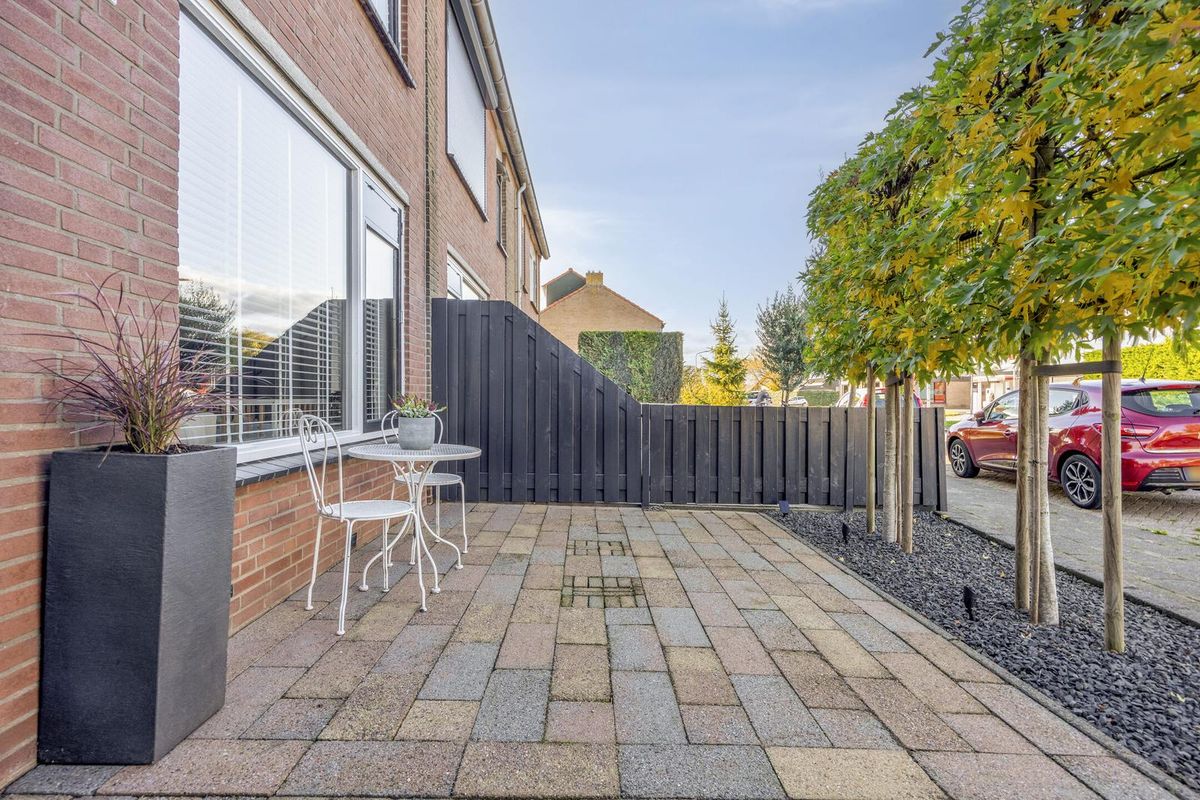 Misschien wel één van de fijnste plekken van dit huis, is de net zo sfeervolle achtertuin gelegen op het zonnige zuiden. Stap je vanuit de keuken de tuin in, dan sta je meteen onder de ruime veranda, een plek waar het hele jaar door het gevoel een vakantiegevoel krijgt. Hier kun je heerlijk ontspannen, een drankje drinken, een drankje maken aan de bar, of gewoon genieten van de zon en de rust. Omdat er geen rij woningen direct achter de woning staan heb je een prettig vrij zicht en privacy. De tuin is ook perfect voor een feestje of een gezellige zomerdag met je gezin, vrienden of familie. Kortom, voldoende ruimte, een fijne sfeer en volop mogelijkheden om te genieten.