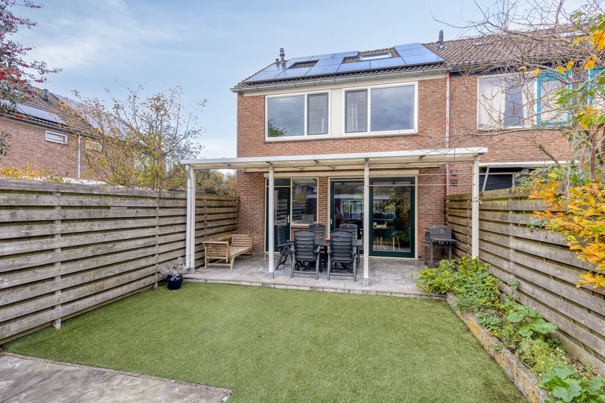 De achtertuin ligt op het zuiden en biedt daardoor vrijwel de hele dag zon. De tuin is diep, verzorgd en praktisch ingericht, met een ruim terras en veel privacy.