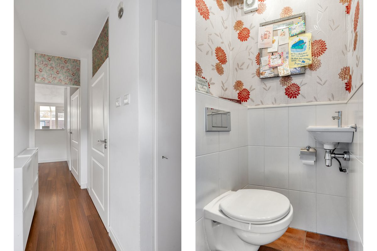 De entree geeft toegang tot de hal met toilet, waarna je direct de ruime doorzonwoonkamer binnenstapt. De trap bevindt zich in de woonkamer, wat zorgt voor een logische indeling en een prettig ruimtelijk gevoel. Dankzij de grote raampartijen voelt de woonkamer licht en uitnodigend aan, met voldoende plek voor zowel een royale zit- als eethoek.