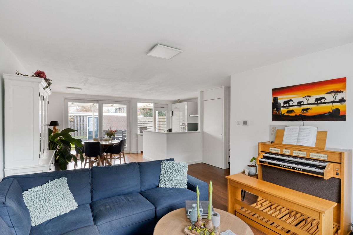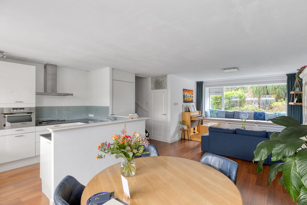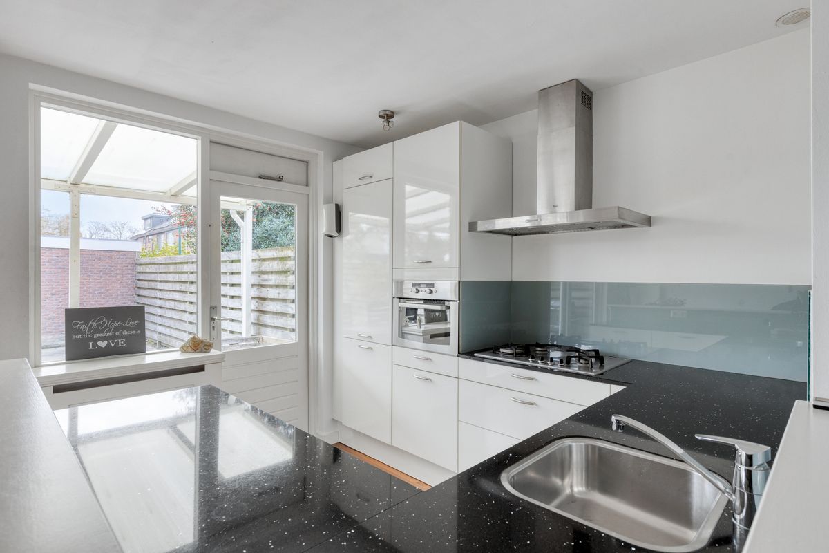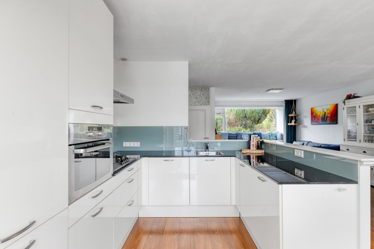Aan de tuinzijde ligt de open keuken, voorzien van een inbouw koel-vriescombinatie, combi-oven, vaatwasser, gaskookplaat en afzuigkap.
