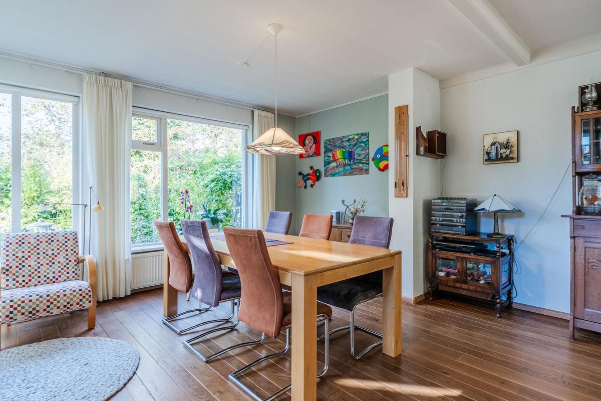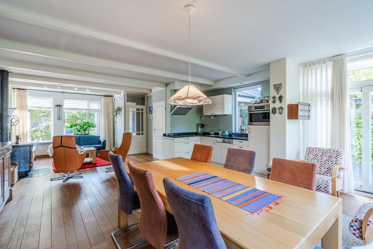 Via de verzorgde voortuin kom je binnen in de hal met toiletruimte, trapopgang en toegang tot de garage. De ruime woonkamer bevindt zich aan de voorzijde van de woning en is heerlijk licht dankzij de grote ramen in de voor-, zij- en achtergevel. De houtkachel (ter overname) zorgt voor een warme en gezellige sfeer in de wintermaanden. De open keuken is uitgevoerd in een lichte kleurstelling en voorzien van onder andere een koelkast, combi-oven, inductiekookplaat, afzuigkap en vaatwasser. Hier kook je met plezier, terwijl je in contact blijft met de rest van het gezin of je gasten in de woonkamer. In het uitgebouwde eetgedeelte van de woonkamer is ruimte genoeg voor een grote eettafel. Via de schuifpui kom je in de fraai aangelegde achtertuin.