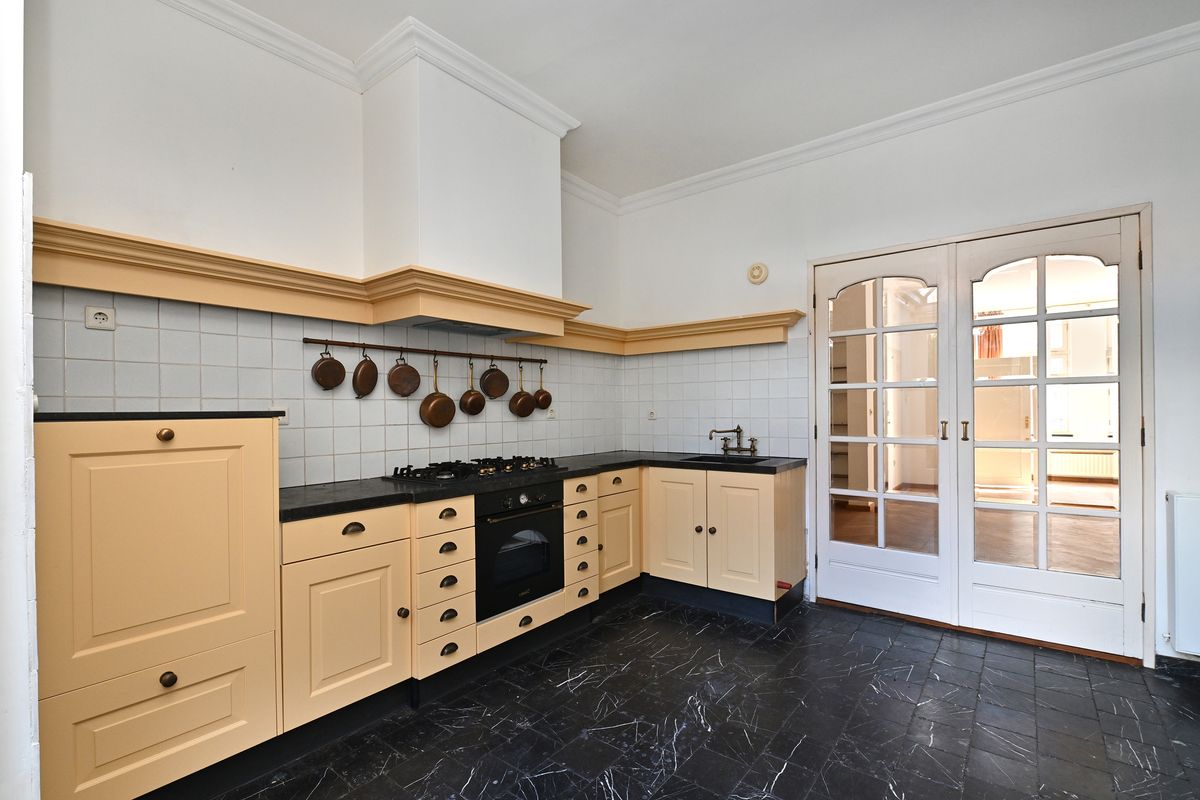 De keuken is in 2025 voorzien van nieuwe apparatuur en uitgevoerd in een hoekopstelling met granieten werkblad, 5-pits gasfornuis met schouwafzuigkap, vaatwasser en oven. De keuken is afgewerkt met gestucte wanden en plafond, een sfeervolle lichtkoepel en openslaande tuindeuren naar de tuin.