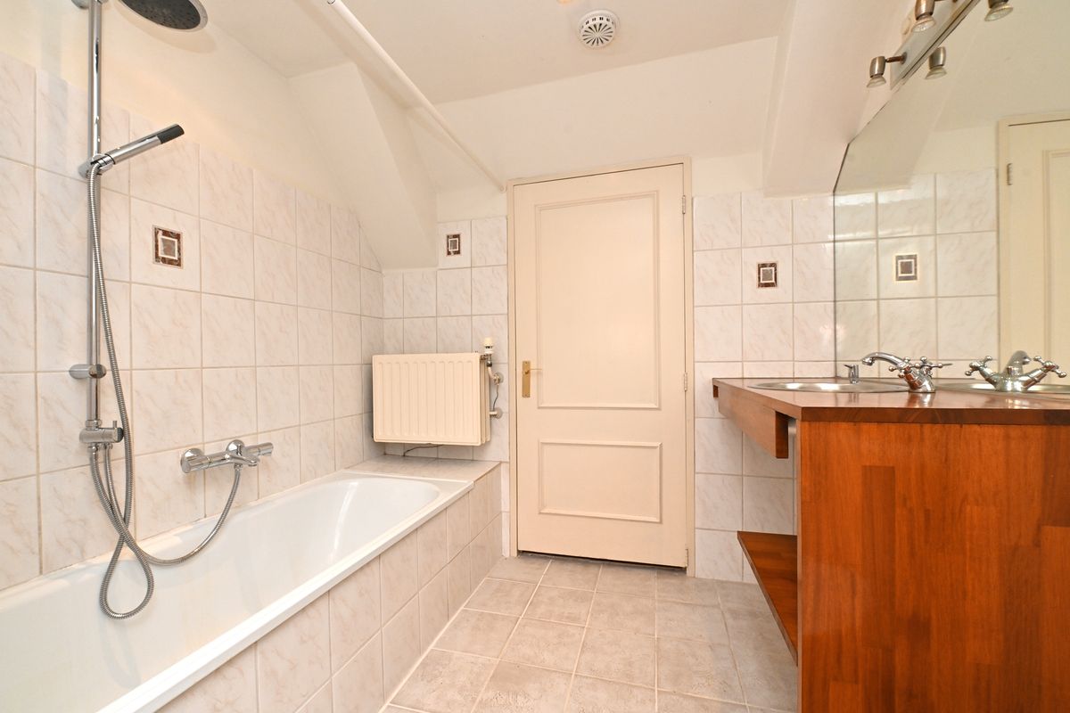 De badkamer op deze verdieping is compleet uitgerust met een ligbad, wastafelmeubel, tweede toilet en biedt tevens toegang tot de c.v.-ruimte.