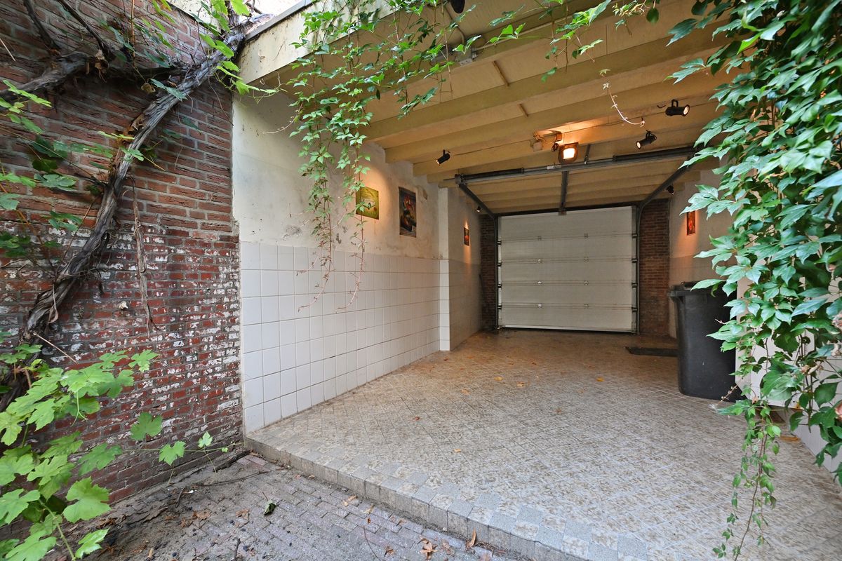 Achter op het perceel bevindt zich een vrijstaande stenen garage, toegankelijk via de tuin en tevens via de trap vanaf het dakterras. De garage beschikt over een eigen oprit via de achtergelegen weg — een uniek pluspunt in hartje centrum.
