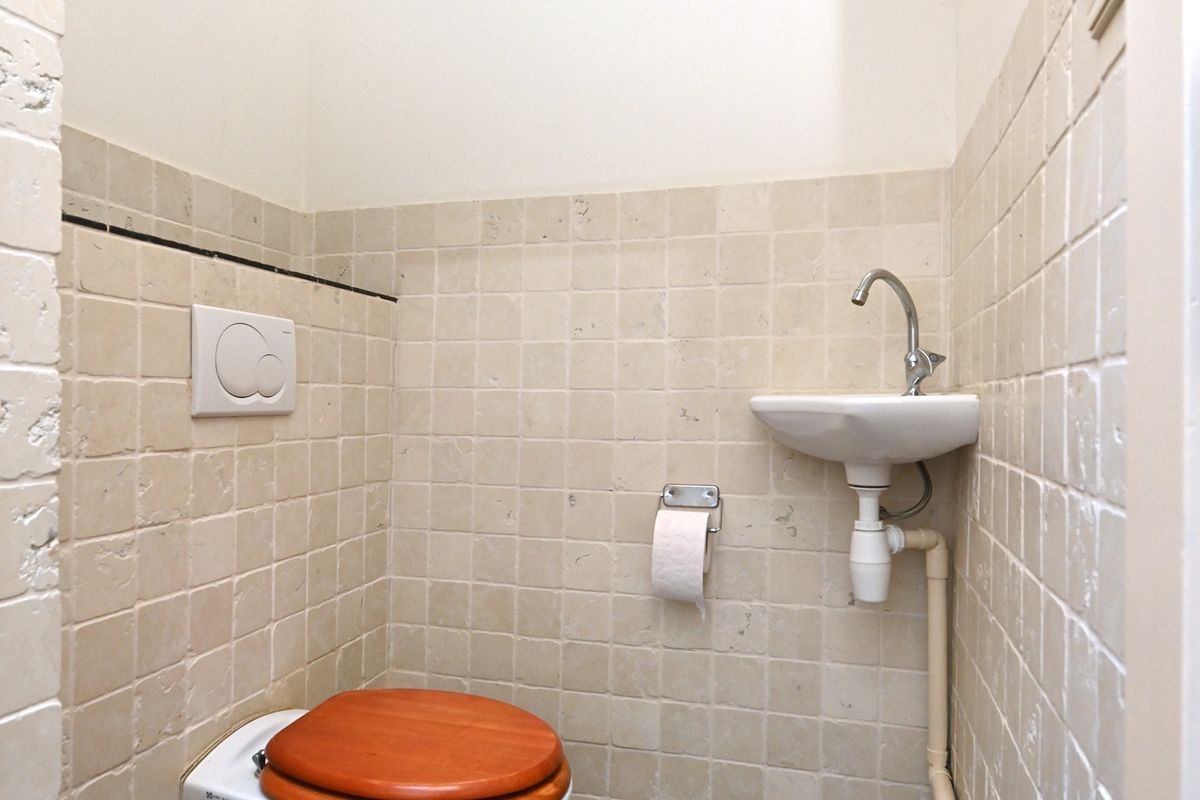 De betegelde toiletruimte op de begane grond is separaat bereikbaar via de keuken.