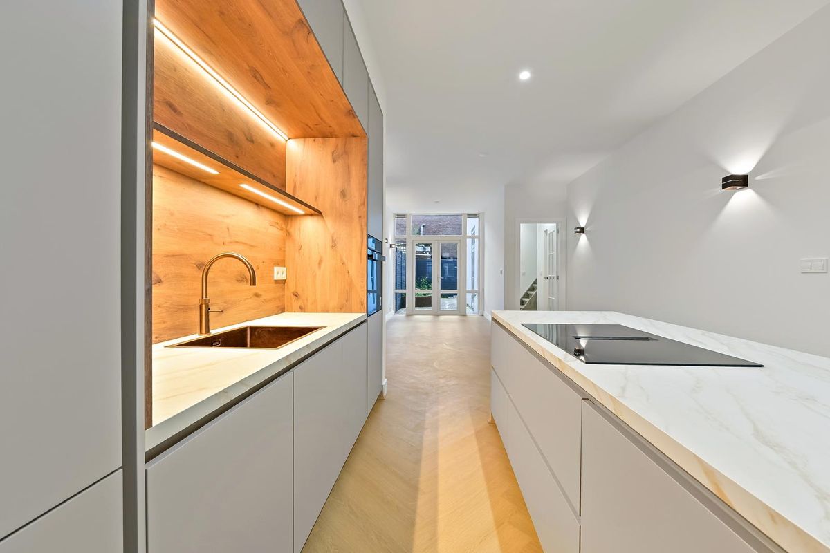 In 2025 is de gehele woning met zorg en smaak gerenoveerd, waarbij uitsluitend gebruik is gemaakt van duurzame, hoogwaardige materialen. De vloeren op beide niveaus zijn voorzien van vloerverwarming en een stijlvol visgraatmotief. De luxe badkamer ademt een wellness-sfeer dankzij de dubbele inloopdouche, het ligbad, het dubbele wastafelmeubel met verlichte spiegel en de fraaie betegeling met nissen. De moderne keuken is volledig uitgerust met Siemens inbouwapparatuur: combimagnetron, oven, inductiekookplaat met geïntegreerde afzuiging, koelkast met vriezer, vaatwasser, Quooker-kraan en wijnklimaatkast. De strakke, greeploze kasten zorgen voor een luxe uitstraling en veel opbergruimte.