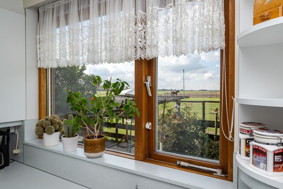 De woonkamer is licht en ruim, met grote ramen die uitkijken over het polderlandschap. U kunt hier de seizoenen letterlijk zien veranderen: van de ochtendmist over de velden tot de zonsondergang achter de horizon. De keuken met de aangrenzende eetkamer biedt voldoende ruimte voor een gezellige eetplek. Wie houdt van koken en sfeer, kan hier met een nieuwe indeling of moderne apparatuur eenvoudig iets bijzonders creëren.
