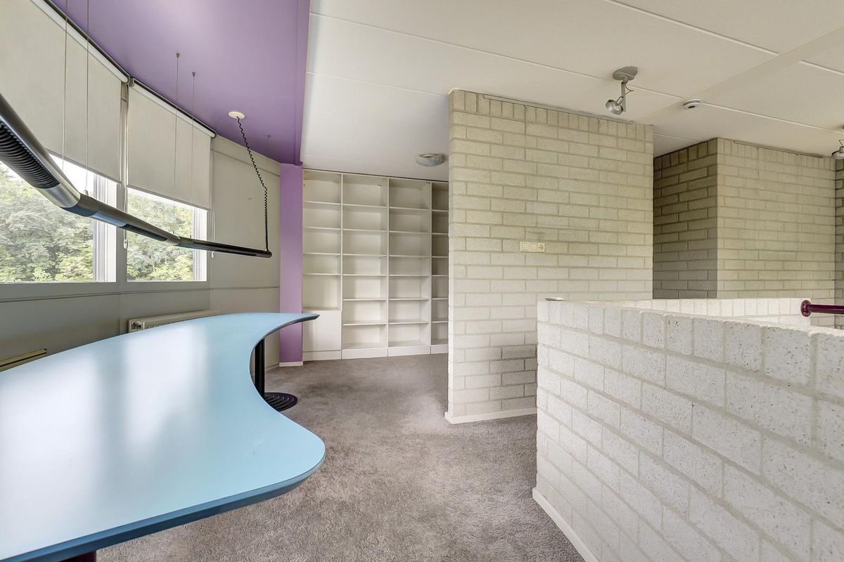 De ruime en lichte overloop, voorzien van grote raampartijen rondom, biedt een prettige doorgang naar de vertrekken op deze verdieping. Daarnaast is er voldoende ruimte om hier een werkkamer of eventueel een extra slaapkamer te realiseren. Momenteel bevinden zich op deze verdieping twee (slaap)kamers.