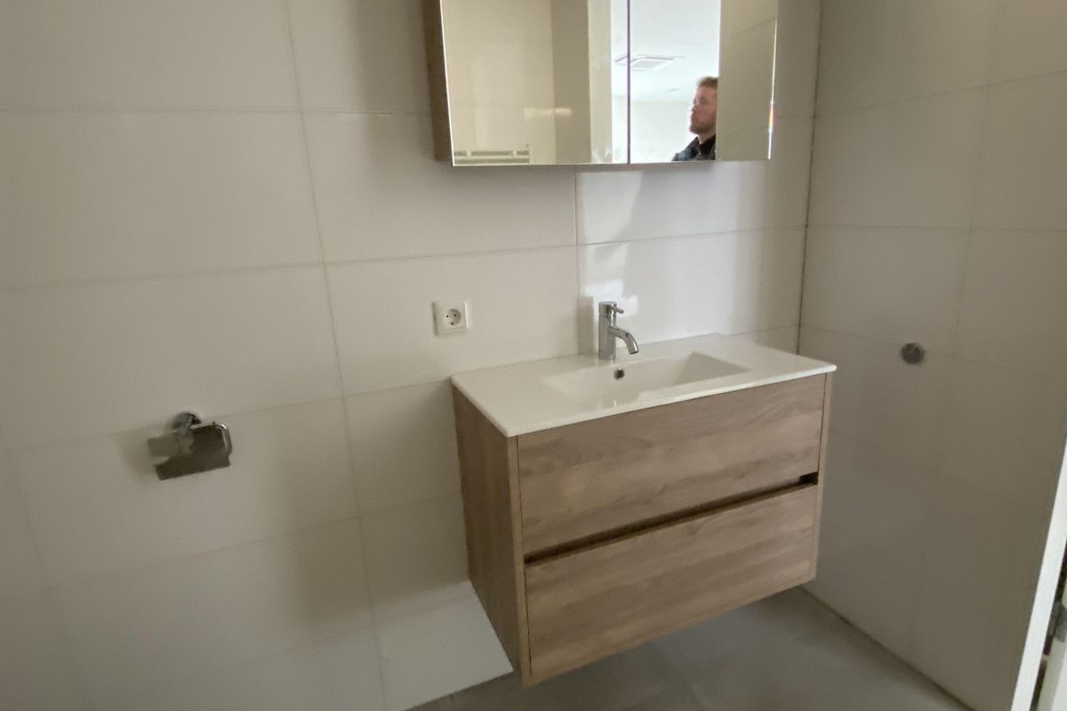 The energy rating is A++++ and each apartment has its own solar panels (at least 4 per unit). All this in a very convenient and attractive location almost in the center of Geleen. Amenities such as supermarkets, restaurants, and shops are just a 5-minute walk away. The rent includes monthly service charges. The apartment is furnished and includes modern PVC flooring, fixed lighting, curtains, and bathroom fixtures. The modern kitchen is equipped with a refrigerator, combination oven/microwave, extractor hood, induction cooktop, dishwasher, and ample storage space. The bathroom features a modern walk-in shower, a sink with vanity, and a wall-hung toilet. The bedroom and bathroom have electric radiators, and the living room/kitchen has a ceiling unit that also has cooling.