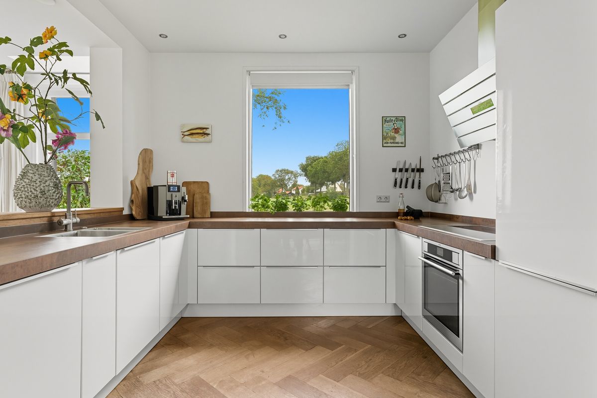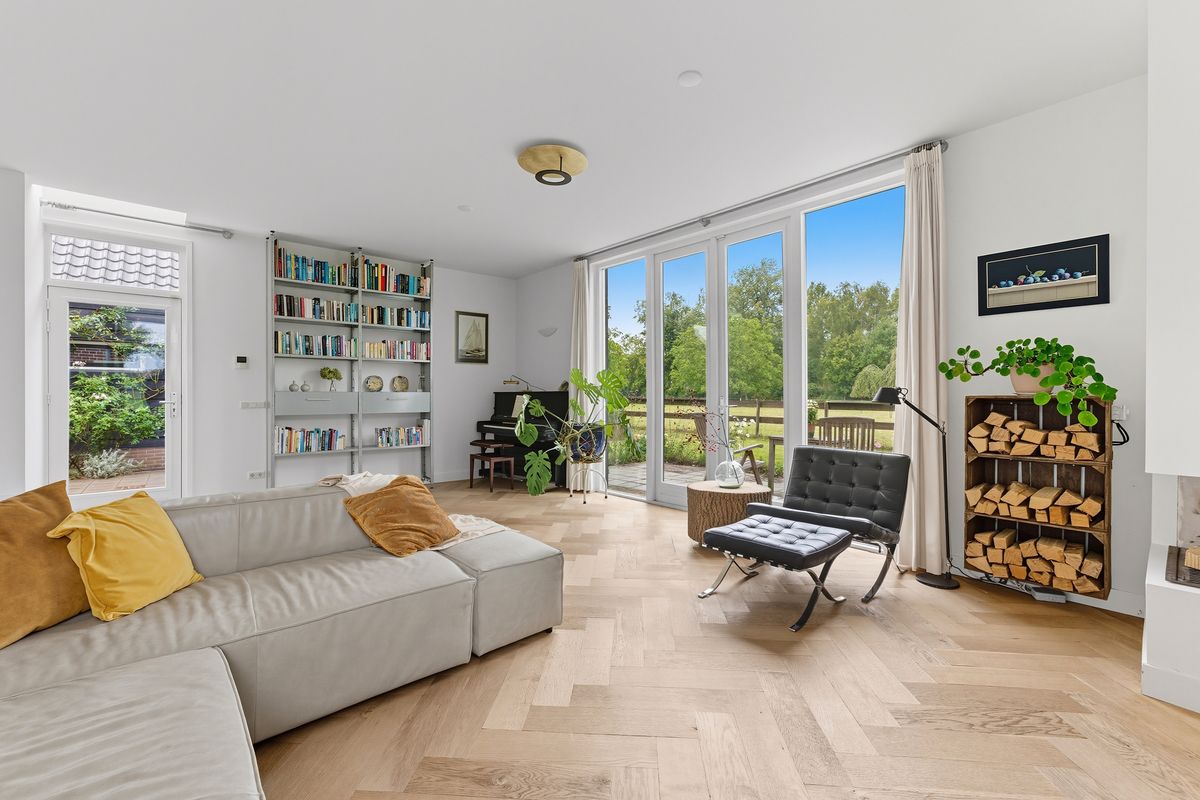 In de living word je direct verrast door ruimtelijkheid en de charmante afwerking. In de uitbouw is er een royale woonkamer gecreëerd, licht en sfeervol, met een fijne connectie naar de tuin. Er is een charmante open haard én houtkachel aanwezig. De woonkamer heeft een fijne connectie met het eetgedeelte en de leefkeuken. De keuken heeft een strakke en luxe afwerking en is volledig voorzien van inbouwapparatuur.