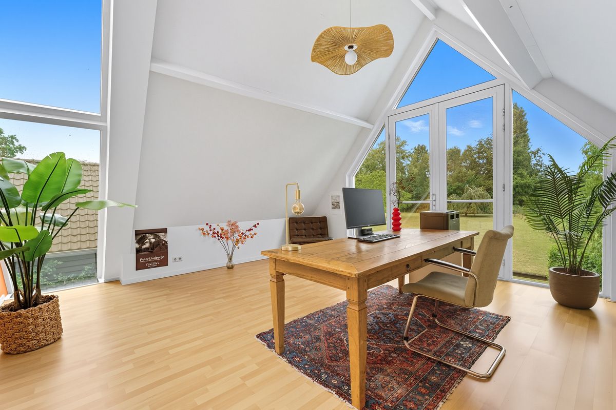 In de tuin vind je een groot vrijstaand bijgebouw dat volledig is geïsoleerd is. Dit bijgebouw is opgedeeld in een grote garage en een apart buitenverblijf met keuken, badkamer, woonkamer en slaapkamer. Deze ruimte biedt ongekende mogelijkheden: een gastenverblijf, atelier, kantoor aan huis of een mantelzorgwoning: het kan hier allemaal.