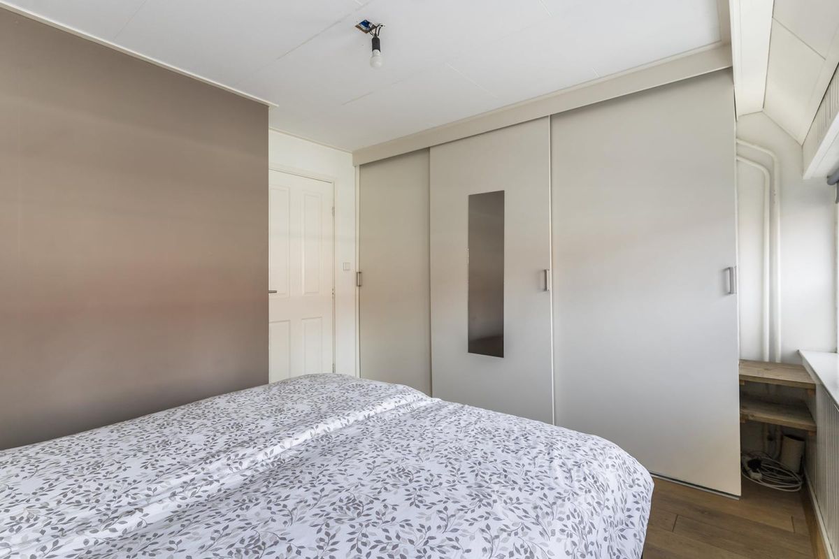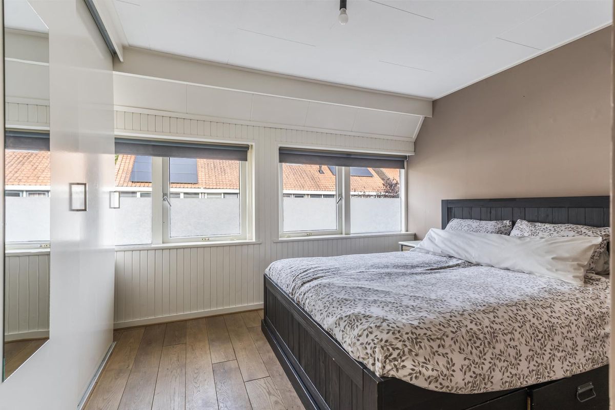 Op zolder bevindt zich een ruime derde slaapkamer met brede dakkapel, wat zorgt voor extra licht en ruimte. Achter de knieschotten is volop bergruimte aanwezig.