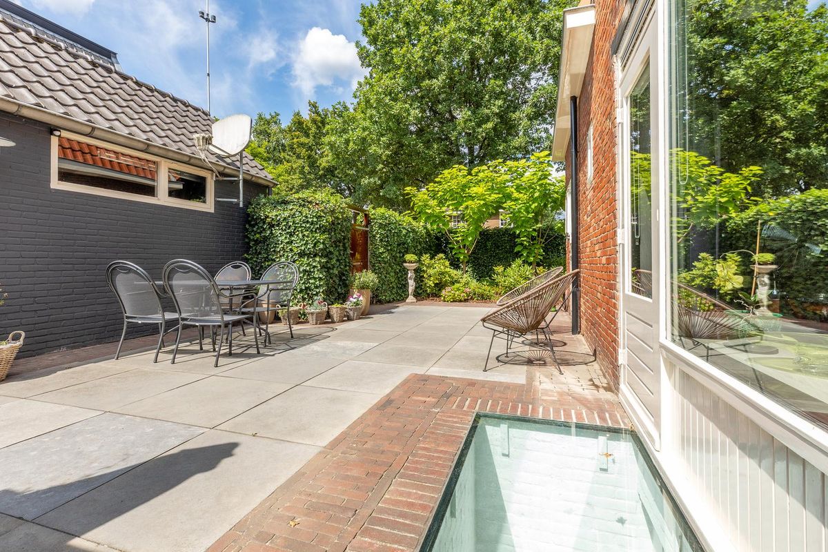 Dankzij de grote raampartijen en tuindeur is er een directe verbinding met de zonnige tuin en de lommerrijke omgeving.
