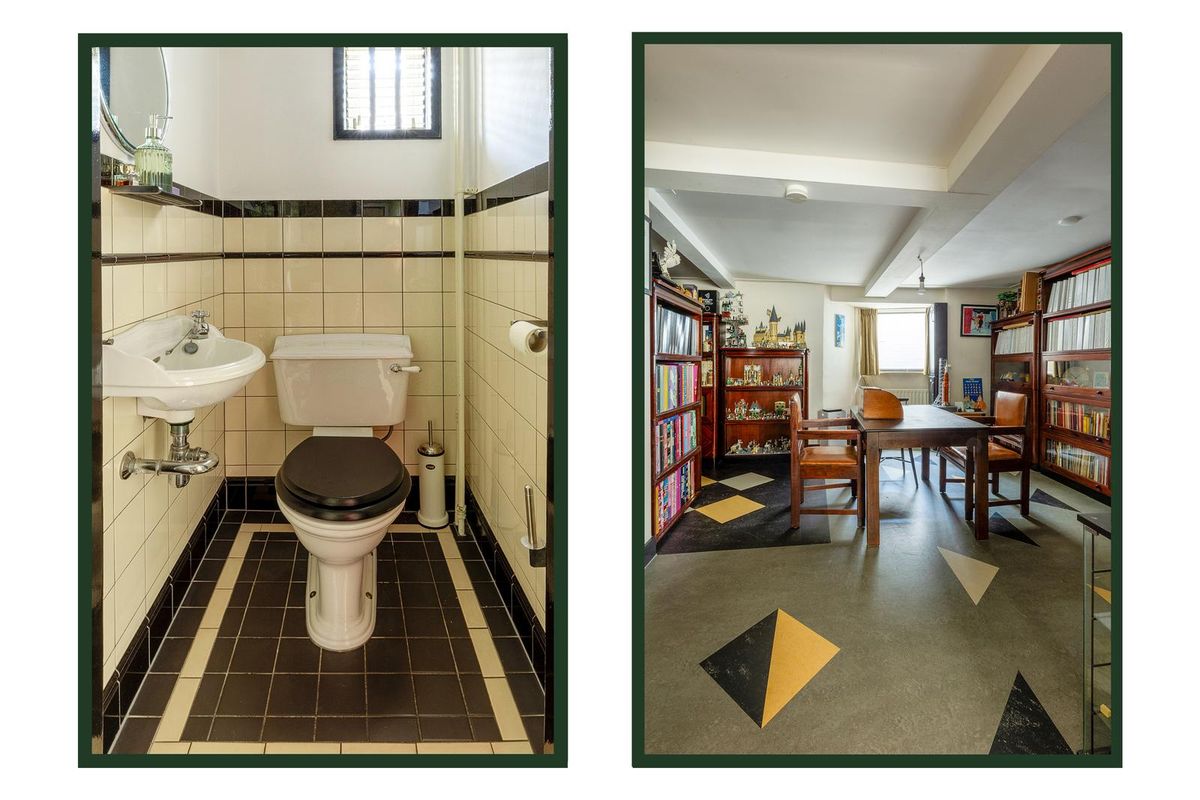 De entree en vestibule met Art Deco tegelvloer en tegel-lambrisering geven meteen een gevoel van elegantie en historie. Hier bevindt zich de garderobe en de toegangsdeur naar de onderverdieping.