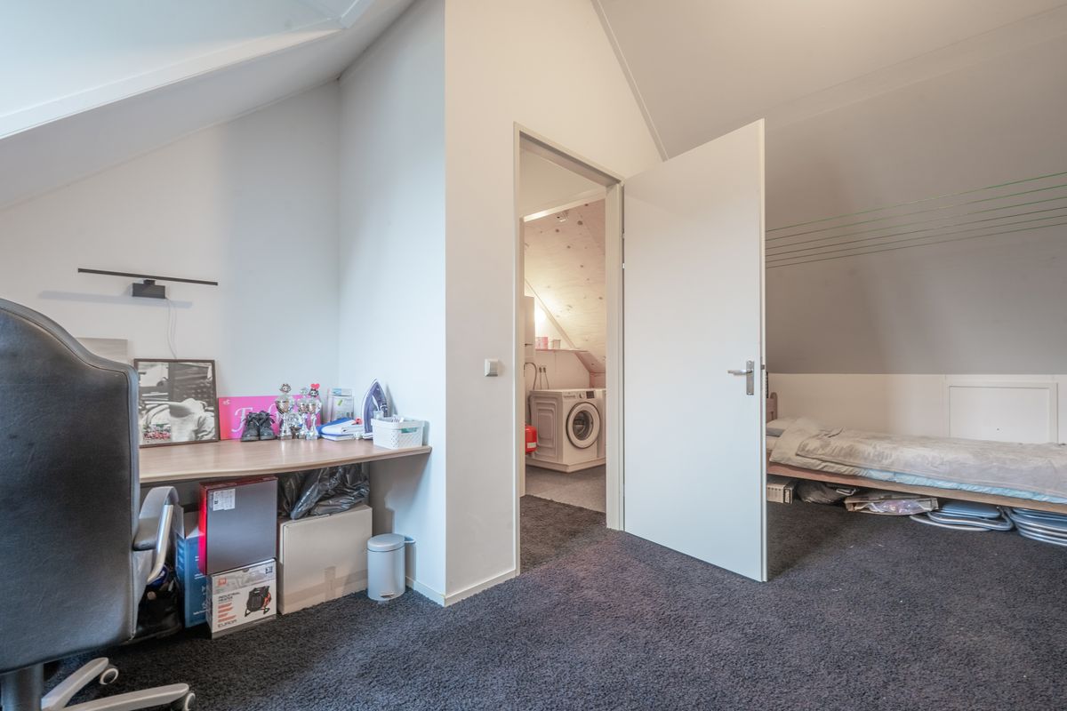 2e verdieping: via vaste trap bereikbaar, overloop, was-/stookruimte voorzien van wasmachineaansluiting, mechanische ventilatie en cv-opstelling, royale 3e slaapkamer met dakkapel, voorts veel bergruimte achter knieschotten.