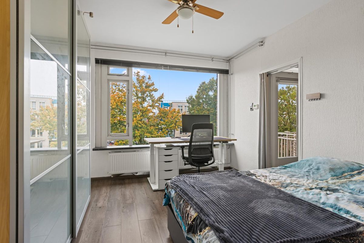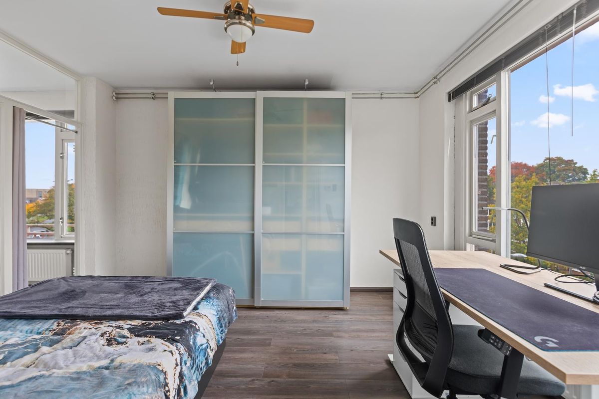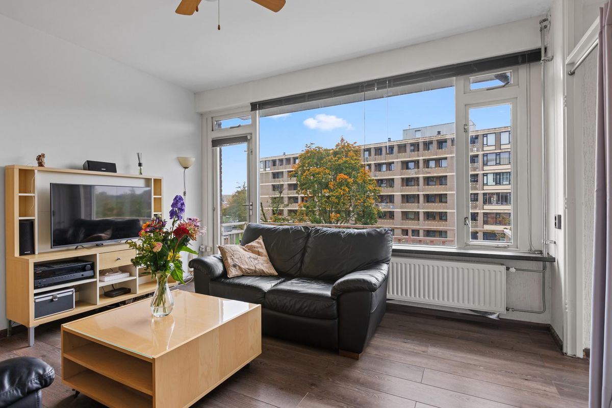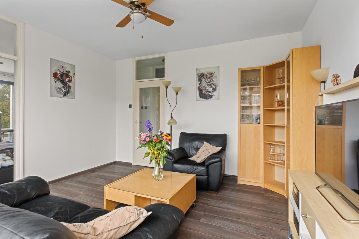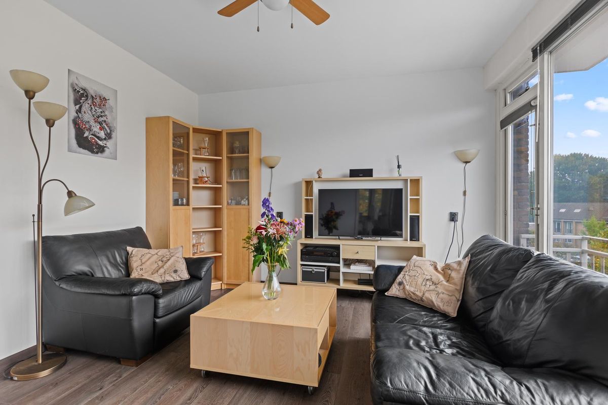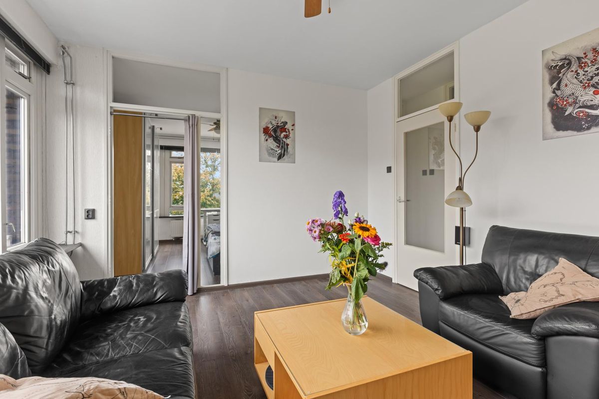 De keuken bevindt zich aan de achterzijde van het appartement en beschikt over alle apparatuur om hier lekker te kunnen koken. Denk daarbij aan een gaskookplaat met afzuigkap, combi-oven, koelkast met vriesvak en ook de aansluiting voor de wasmachine. In de keuken is ruimte voor een knusse eethoek en op mooie zomerdagen geniet je van jouw kookkunsten op het aangrenzende balkon. De woonkamer is de plek om na een drukke werkdag te ontspannen. De grote ramen zorgen voor volop daglicht en een levendig uitzicht over de wijk. Vanuit de woonkamer heb je toegang tot het tweede, zonnige balkon.