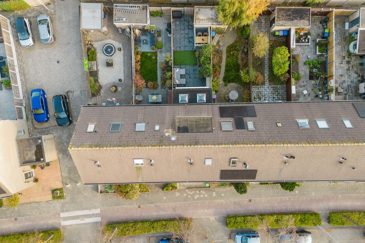 Vanuit de woonkamer bereik je via de schuifpui de fraai aangelegde achtertuin. De achtertuin is twee jaar geleden volledig nieuw aangelegd, is voorzien van een achterom en een elektrisch zonnescherm.