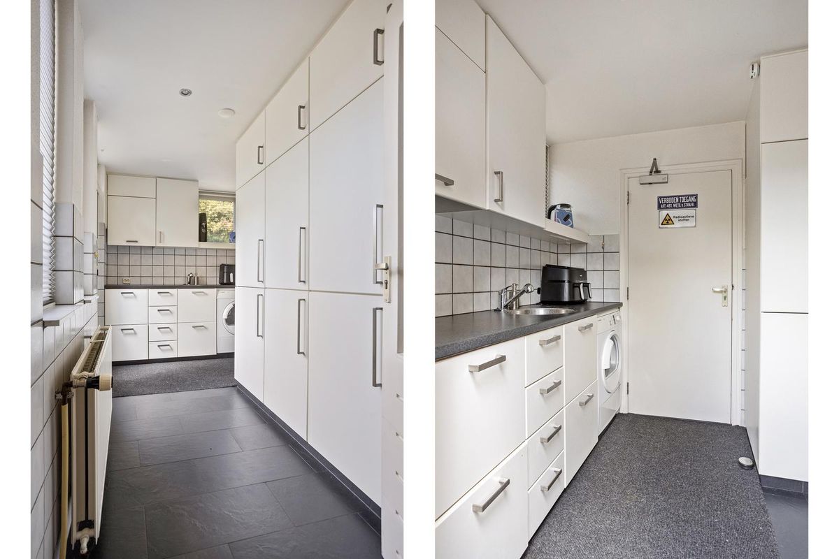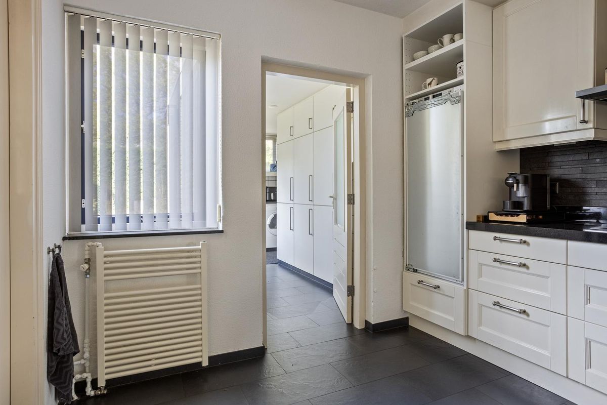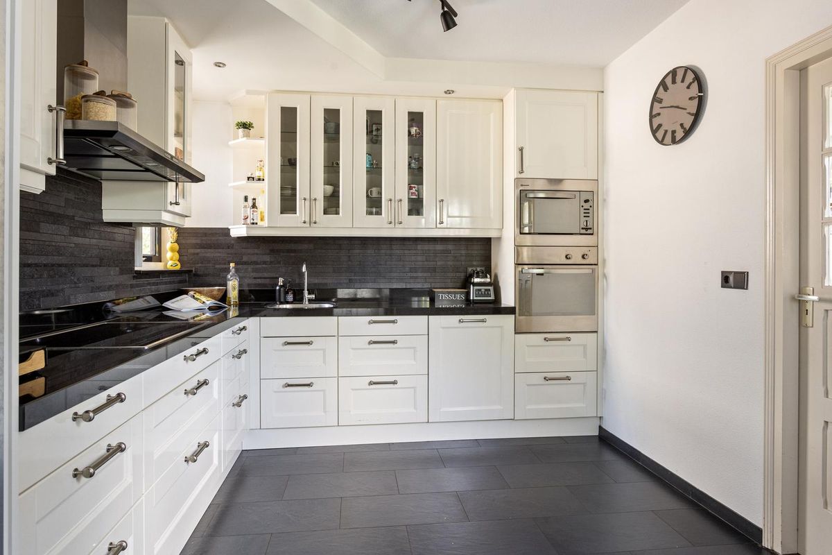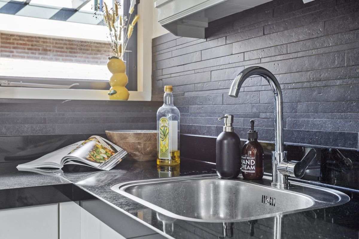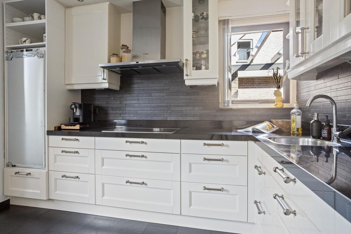 De woonkamer is een fijne, lichte ruimte met uitzicht op de straat. Je kijkt uit op wat reuring en gezelligheid, terwijl je binnen geniet van rust en comfort. Dankzij de open verbinding met de eethoek blijf je altijd in contact, ideaal voor gezellige etentjes of quality time met het gezin. Extra pluspunt? De gezellige haard én de vloerverwarming in de achterkamer die zorgt voor extra comfort op koude dagen. De keuken is modern en strak afgewerkt met witte kasten, luxe inbouwapparatuur en een prachtige zwarte stenen afwerking op de muur. Dankzij de twee ramen heb je hier altijd prettig daglicht tijdens het koken. Ook hier is vloerverwarming aanwezig, wat wil je nog meer?