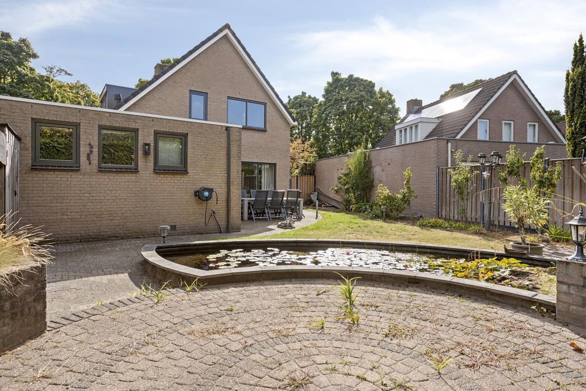 In de tuin vind je alle ruimte om te ontspannen, dineren en genieten. Er is plek voor zowel een gezellige zithoek als een ruime eettafel. Daarnaast beschikt de tuin over een extra opbergruimte voor je tuingereedschap of andere spullen. En als kers op de taart is er een mooie vijver aanwezig, een rustige blikvanger die zorgt voor extra sfeer. Een fijne buitenruimte waar je het hele jaar door van kunt genieten!