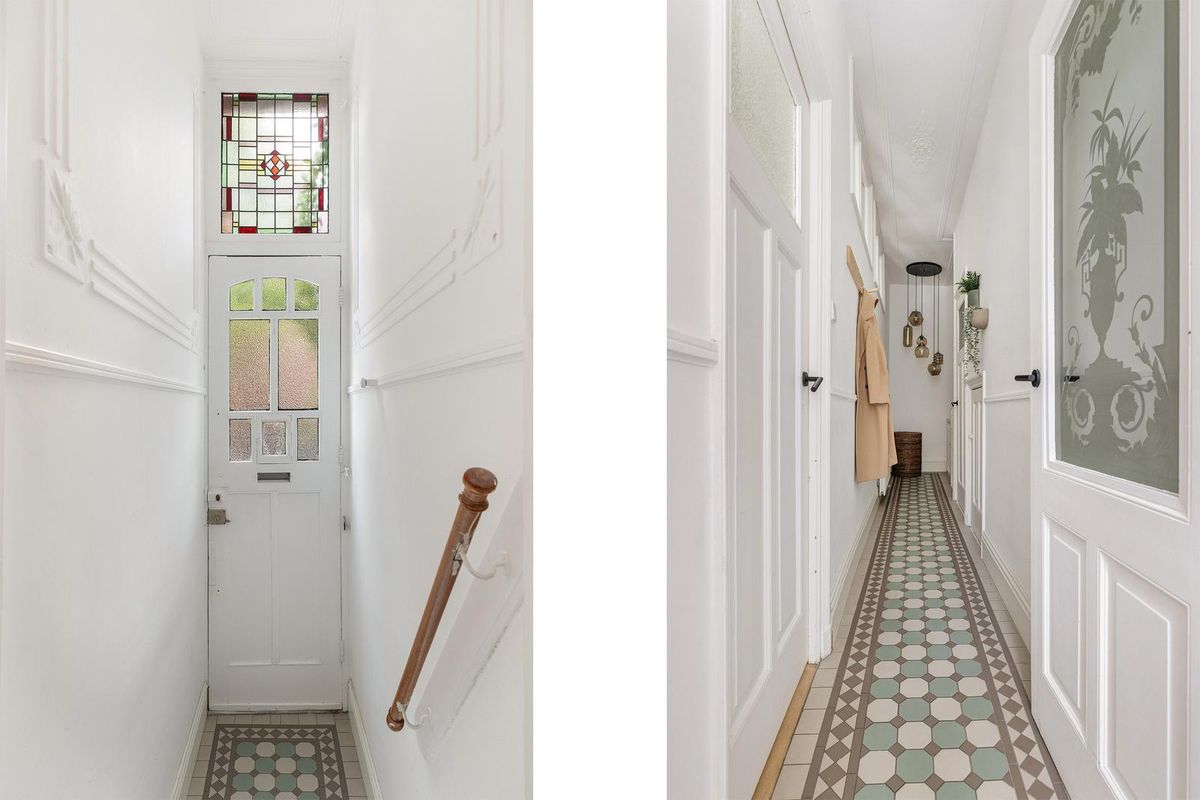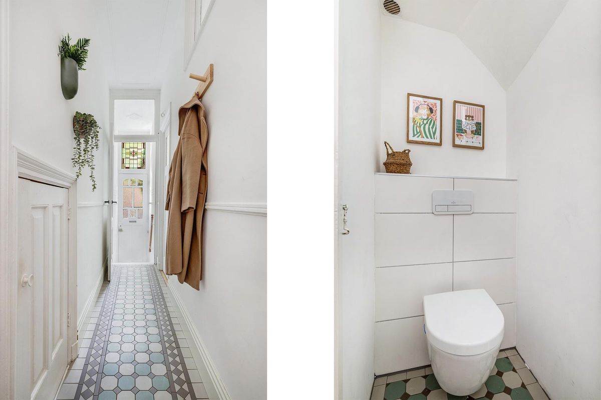 Ingang via de eigen voordeur. Binnenkomst in de tochthal. Middels een kleine trap kom je in de hal. Hier bevindt zich het toilet en de ingang naar de woon gedeelte. Aan het einde van de hal is de trap naar het souterrain.