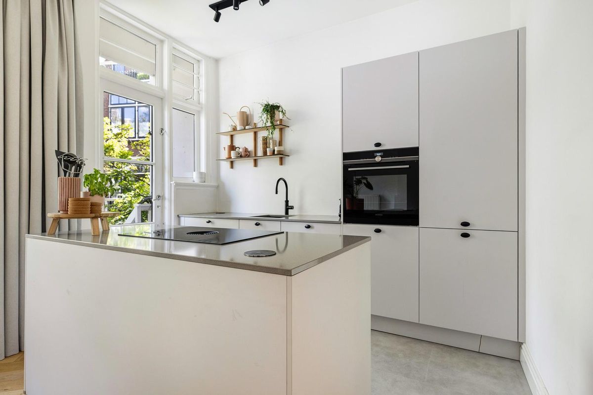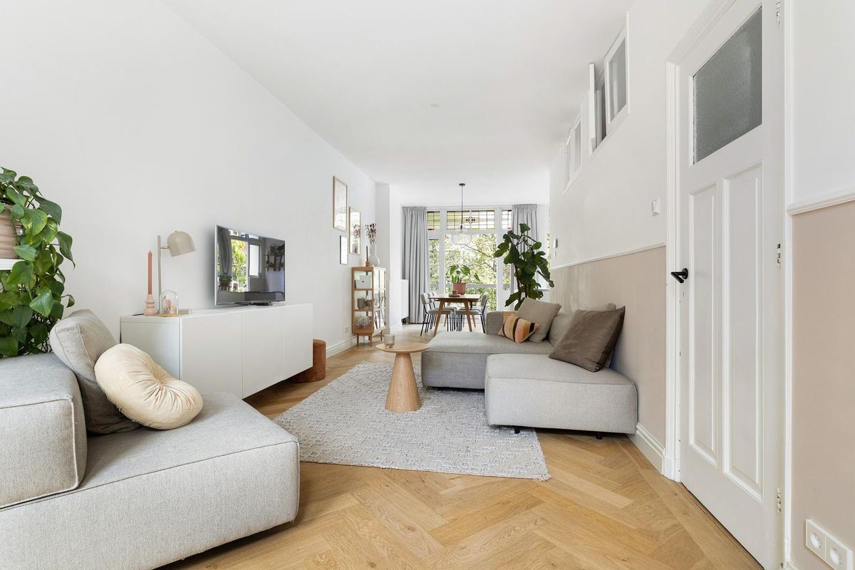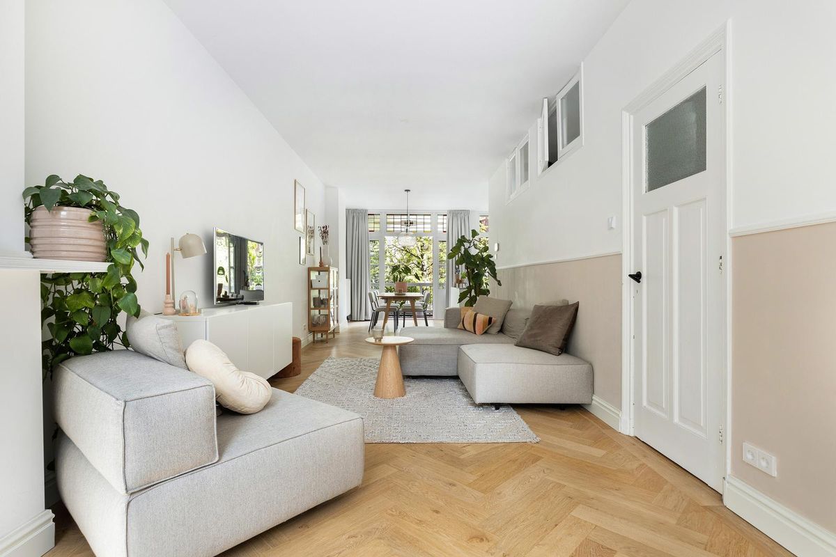 De woonruimte is werkelijk fantastisch. De doorzon woonkamer heeft een zeer mooi visgraat eiken houten parket. Aan de achterzijde van de woning bevindt zich de moderne, open keuken met een composiet blad. Deze is voorzien van diverse Siemens apparatuur en een kookeiland. Door de openslaande deuren kom je op het fijne terras. Deze biedt uitzicht op de knusse tuin. Het terras is een perfecte plekje voor een kopje koffie of een heerlijke lunch. De stevige trap, aan de zijkant van het terras, brengt je naar de gezellige tuin. De tuin is ook toegankelijk via het souterrain.