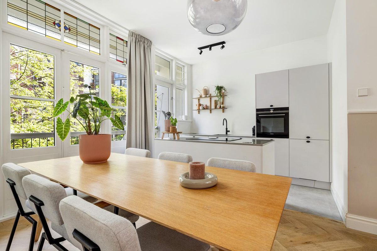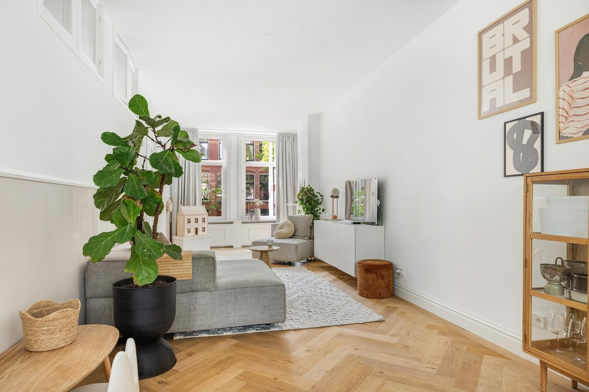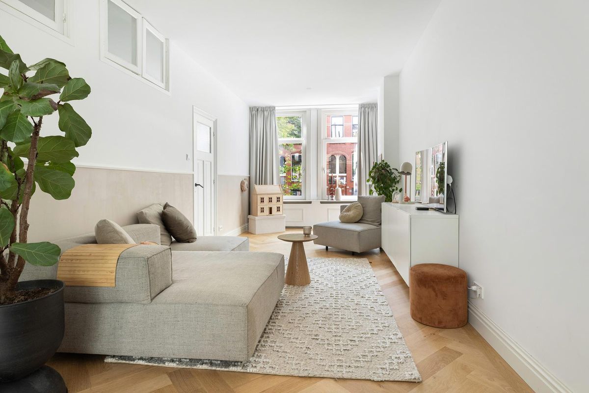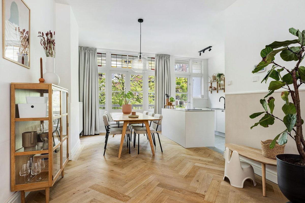 De woonruimte is werkelijk fantastisch. De doorzon woonkamer heeft een zeer mooi visgraat eiken houten parket. Aan de achterzijde van de woning bevindt zich de moderne, open keuken met een composiet blad. Deze is voorzien van diverse Siemens apparatuur en een kookeiland. Door de openslaande deuren kom je op het fijne terras. Deze biedt uitzicht op de knusse tuin. Het terras is een perfecte plekje voor een kopje koffie of een heerlijke lunch. De stevige trap, aan de zijkant van het terras, brengt je naar de gezellige tuin. De tuin is ook toegankelijk via het souterrain.