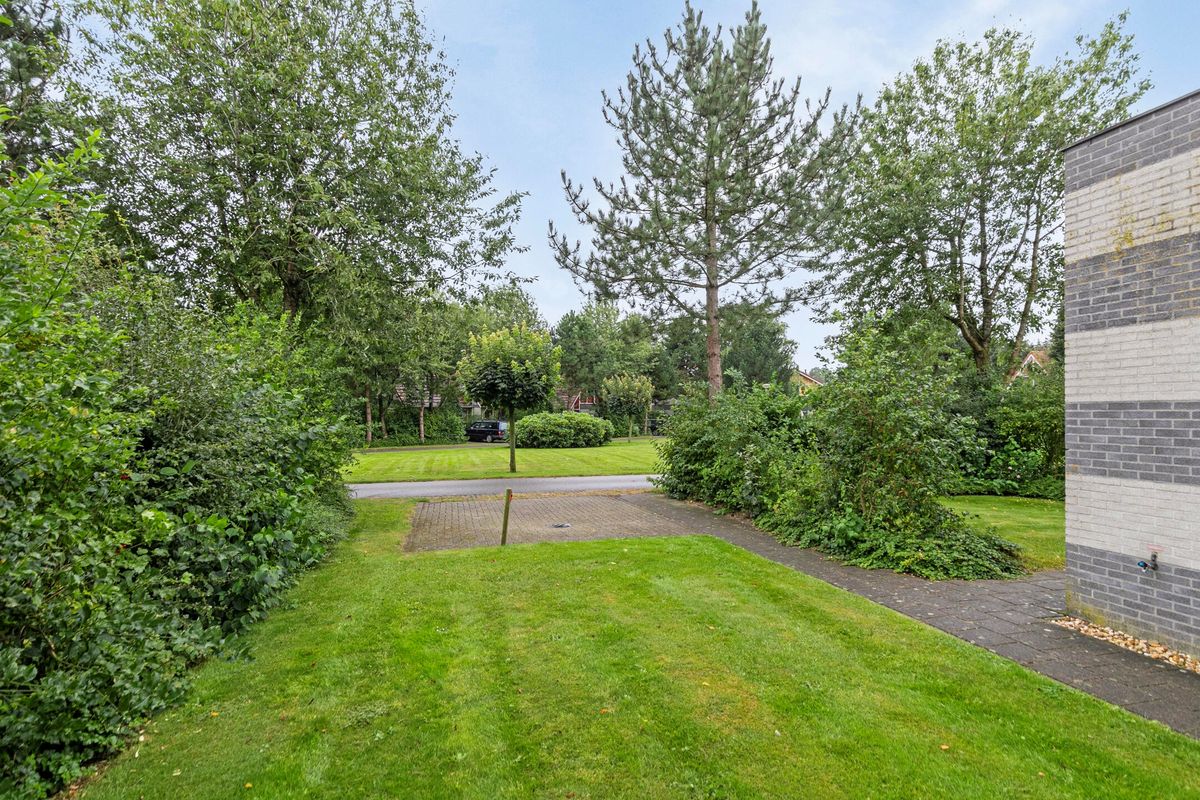 Aan de voorzijde van de woning is ruimte om twee auto’s te parkeren op eigen terrein. De achtertuin, grenzend aan het schildmeer, is ruim opgezet en voorzien van een terras. De tuin in omsloten door een heg, wat zorgt voor veel privacy.