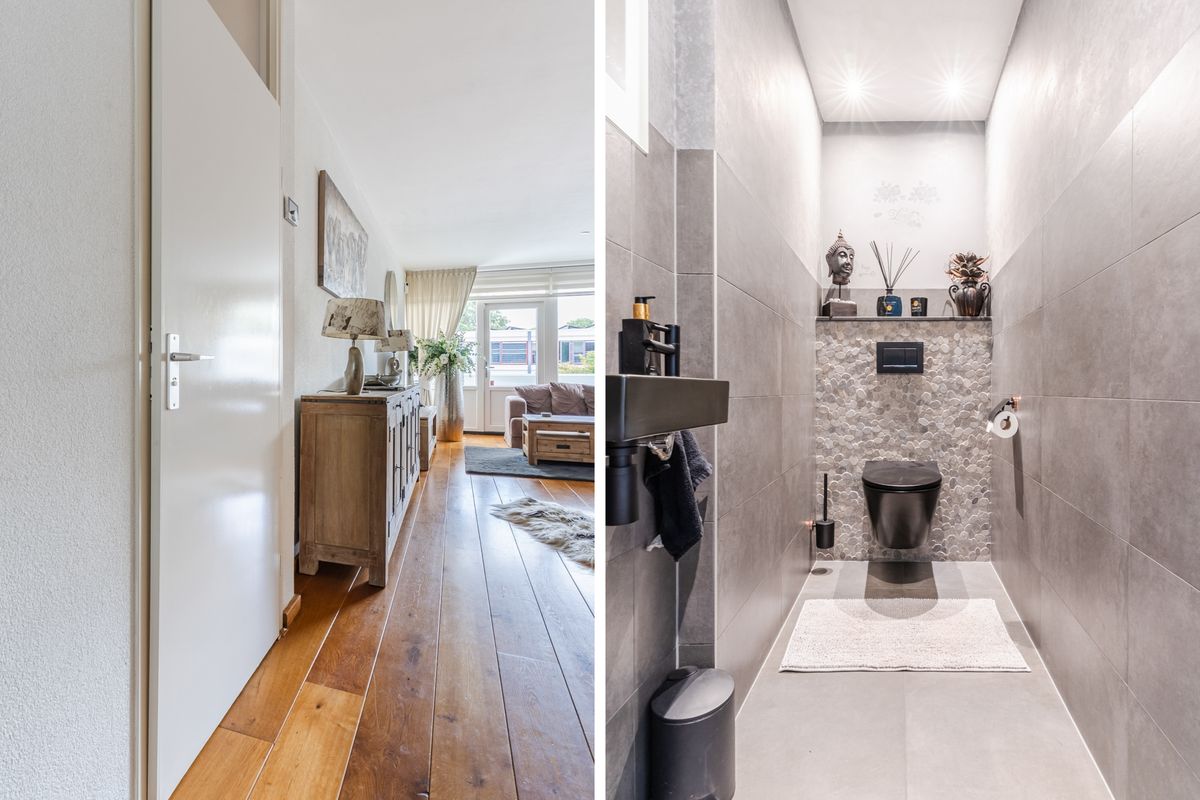 Comfortabele badkamer met inloopdouche op begane grond en badkamer op 2de verdieping;