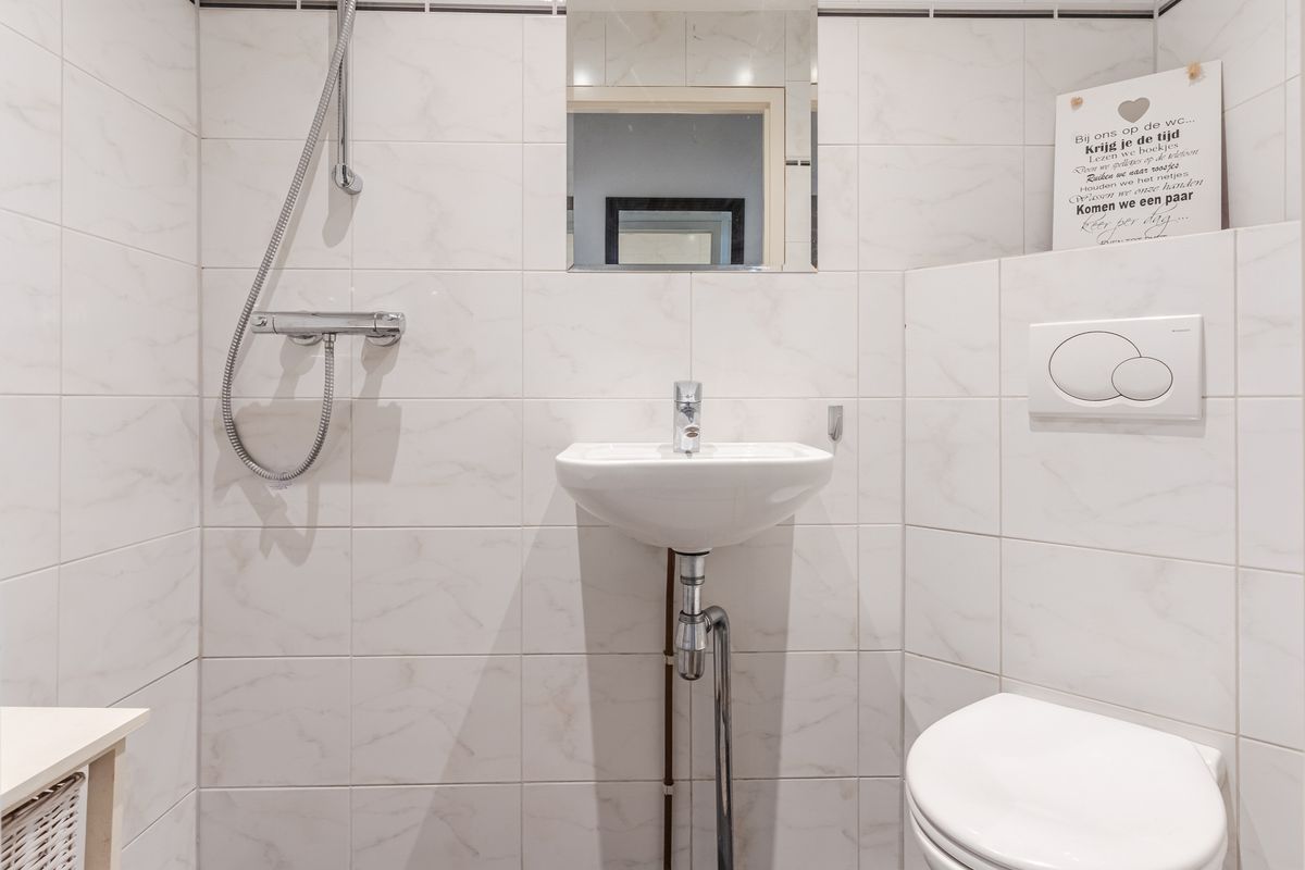 De badkamer heeft een wastafel, toilet en een inloopdouche.