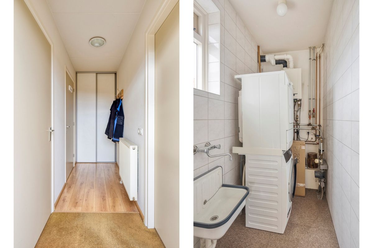 Woonkeuken met aanrechtblok voorzien van inbouwapparatuur. Achter-entree met ruime vaste kast. Bijkeuken met CV-opstelling (Remeha, 2020), wasmachine- en drogeraansluitingen en uitstortgootsteen. Ruime badkamer met inloopdouche, wastafel, toilet en urinoir.