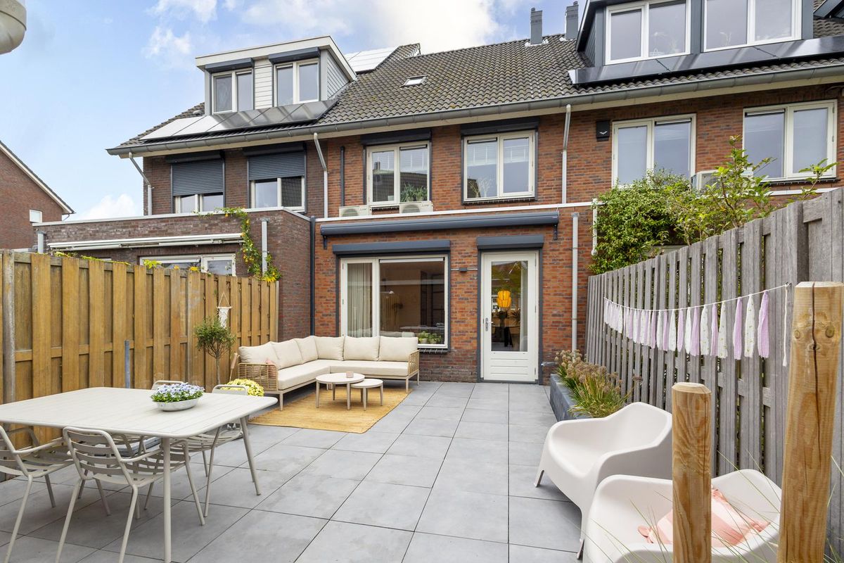 Achter het huis ligt een prachtige tuin op het zonnige zuiden. De tuin is smaakvol aangelegd en is een heerlijke plek voor lange zomeravonden met familie en vrienden. Uiteraard is er een berging aanwezig en een achterom.