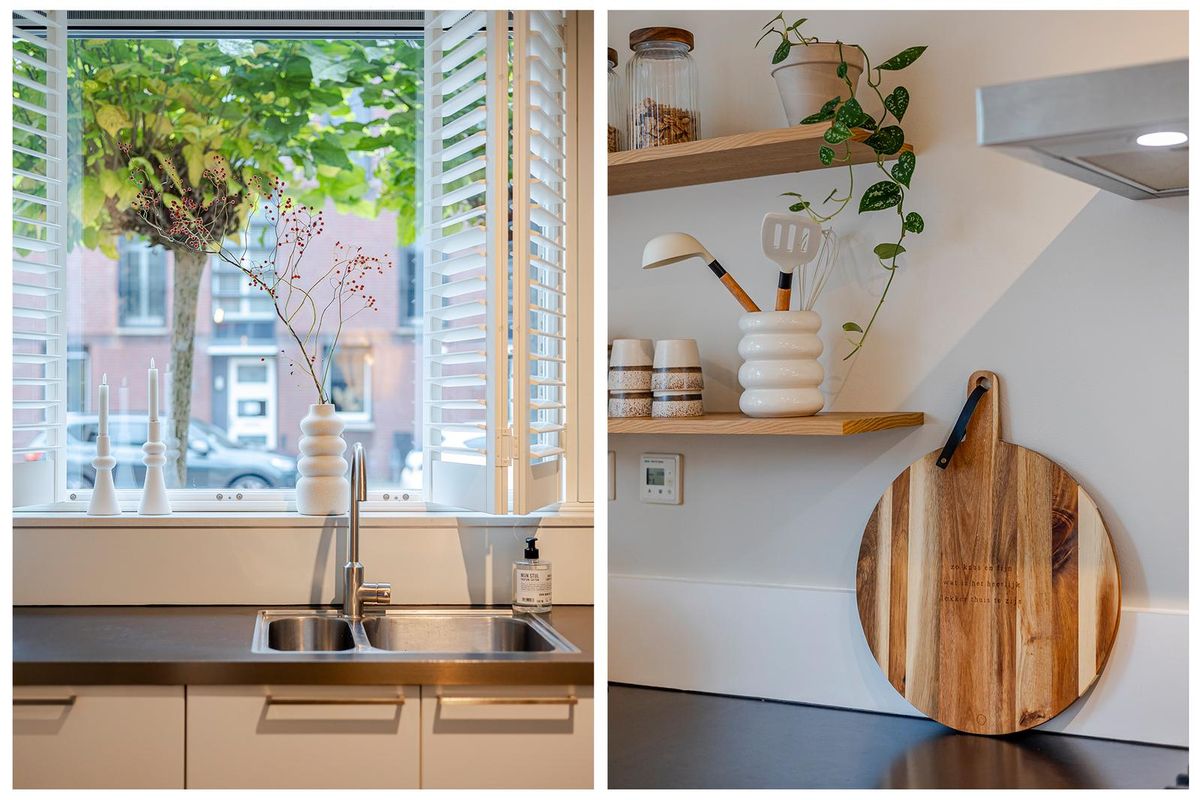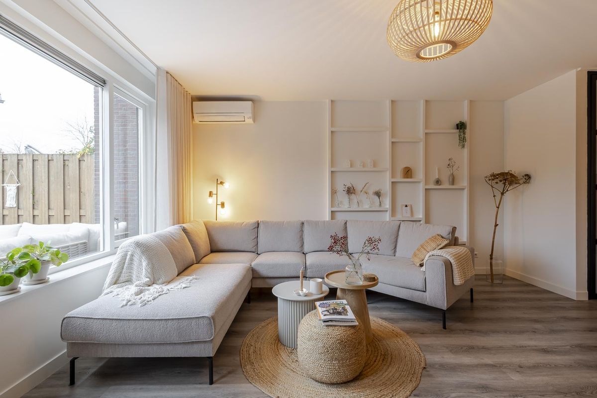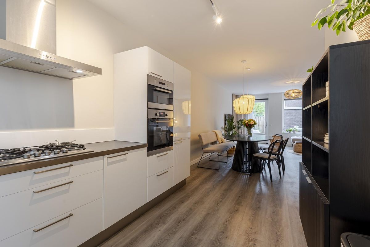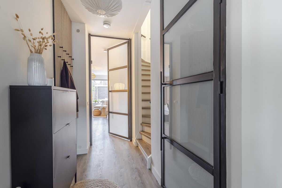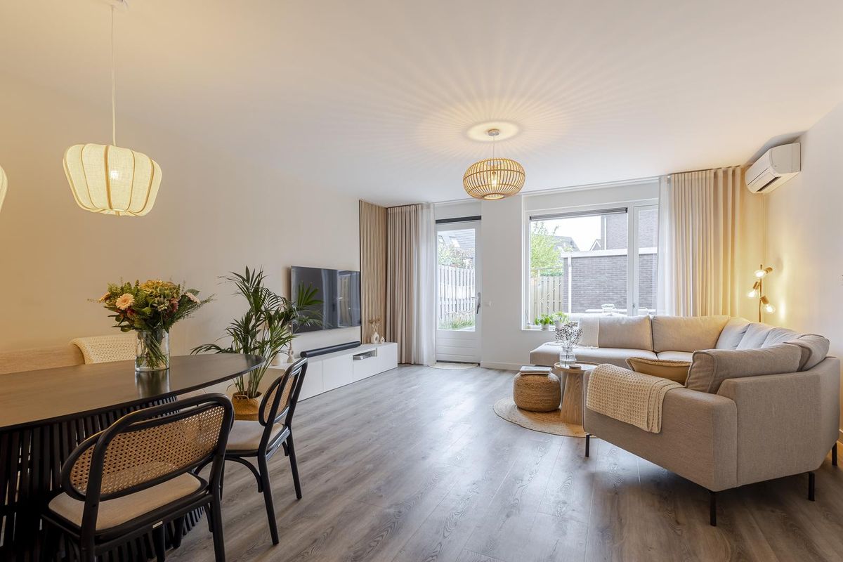 Hal met meterkast, toilet en trapopgang. De woonkamer vormt het hart van de woning, deze is licht en ruimtelijk mét een trapkast, airco en toegang tot de achtertuin. De, in een hoekopstelling uitgevoerde, keuken biedt volop werk- en bergruimte en beschikt over diverse inbouwapparatuur. Op de eerste verdieping bevinden zich 3 slaapkamers, waarvan 2 met vaste kast en 1 met airco, en de badkamer. Alles is fraai afgewerkt en de badkamer is v.v. een inloopdouche, wastafelmeubel met 2 kranen, 2e toilet, een ronde spiegel met verlichting en een designradiator. De tweede verdieping als open zolder met alle ruimte om naar eigen wens in te delen, denk bijvoorbeeld aan het plaatsen van een dakkapel waardoor meer ruimte en licht gecreëerd kan worden. Maar ook het realiseren van 1 of 2 slaapkamers is mogelijk. Achter ingebouwde maatkasten zijn de technische installaties weggewerkt en in de top van de woning tref je een praktische vliering (h.1,30m).