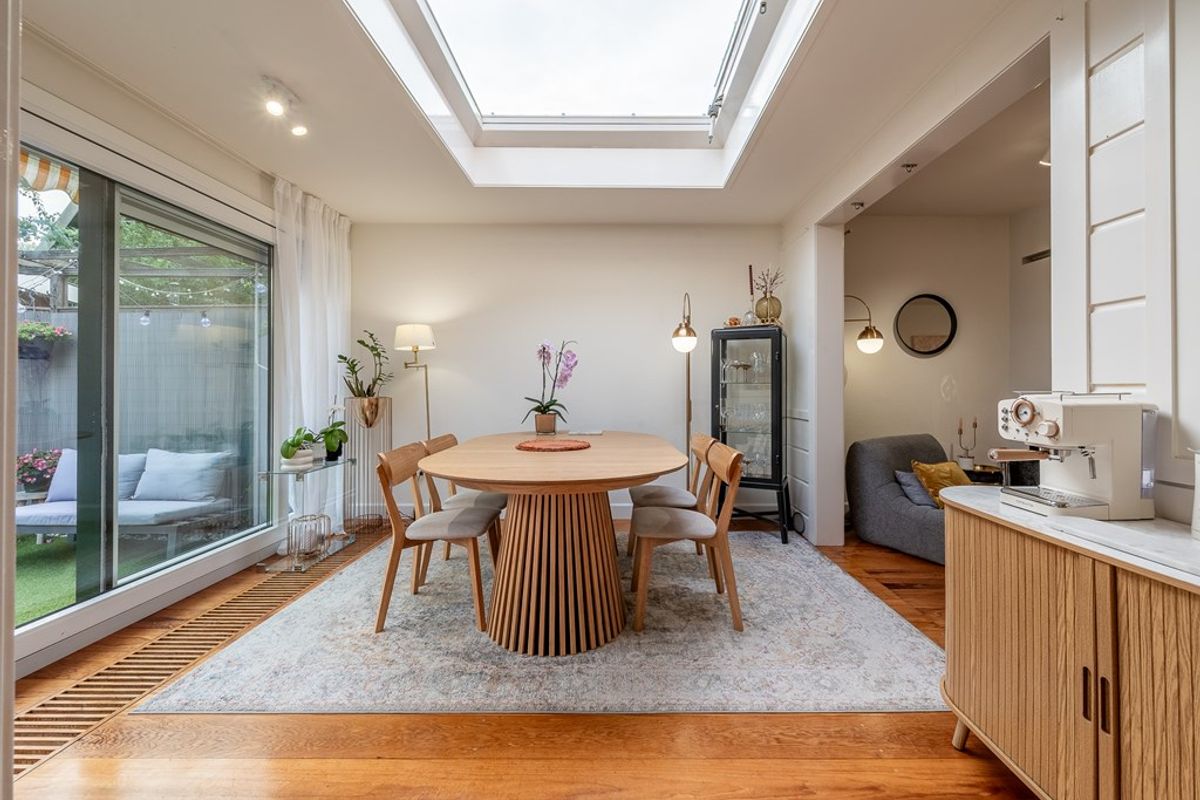 De lichte woonkamer loopt vloeiend over in de ruime open eetkeuken – de ideale plek om te koken, tafelen en samen te genieten. Dankzij de openslaande deuren naar de tuin smelten binnen en buiten op zonnige dagen moeiteloos samen. Op de bovenverdiepingen vind je in totaal vier slaapkamers: perfect voor logees, een werkkamer, hobbyruimte of – waarom niet – je eigen walk-in closet.