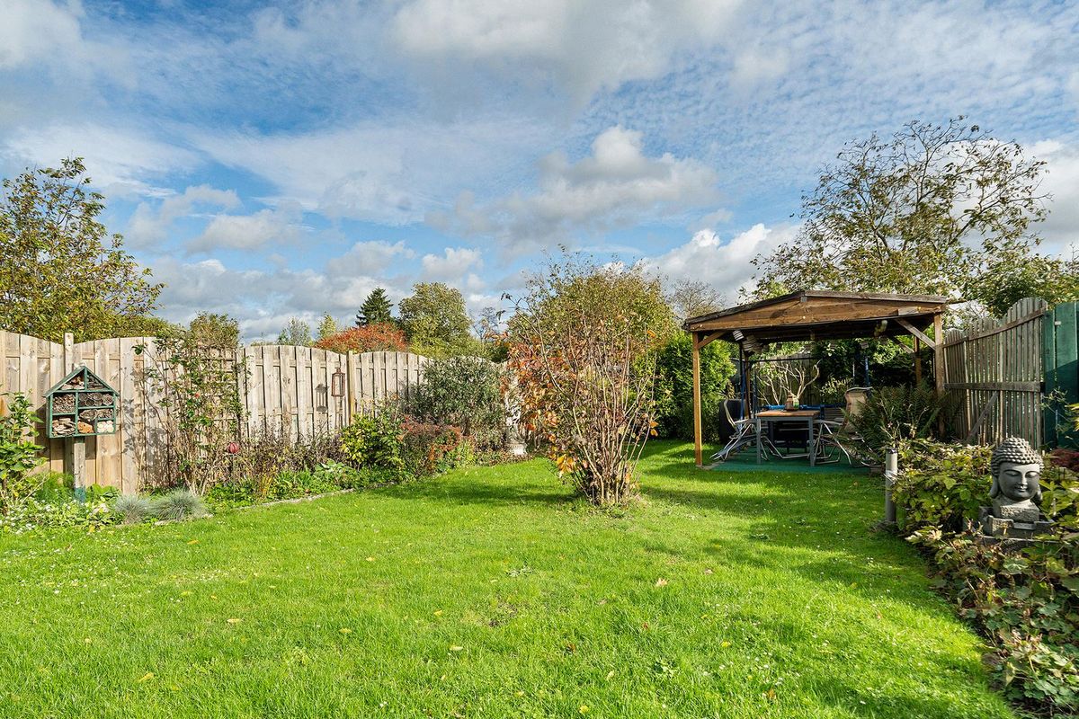 De royale tuin is een ware verrassing! Met veel groen, een overkapping met betegeld zitgedeelte en een praktische berging is dit een heerlijke plek om te ontspannen of te tuinieren. Via de overkapping is bovendien de berging direct te betreden, wat extra gemak biedt. De tuin is tevens bereikbaar via een poort aan de zijkant van de woning.