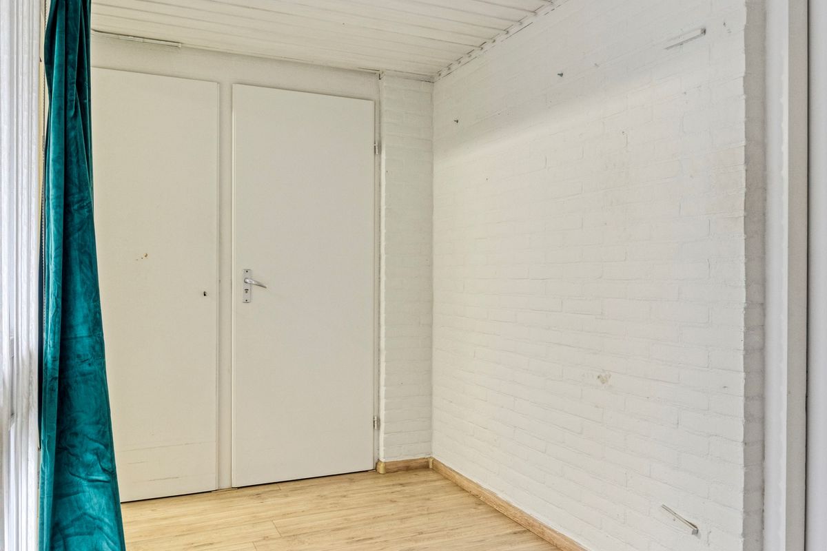De woonkamer is licht en verassend ruim. De ruimte wordt gescheiden door een openhaard met afvoerkanaal. Airco aanwezig.