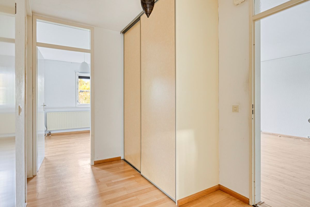 Vervolgens komt u in de tussenhal met vaste kast. Deze biedt toegang tot de badkamer en twee slaapkamers. De badkamer is voorzien van wastafel, inloopdouche, urinoir en een toilet. De voorste slaapkamer is voorzien van een inbouwkast. De achterste slaapkamer is eenvoudig te veranderen in twee slaapkamers door het plaatsen van een tussenwand.