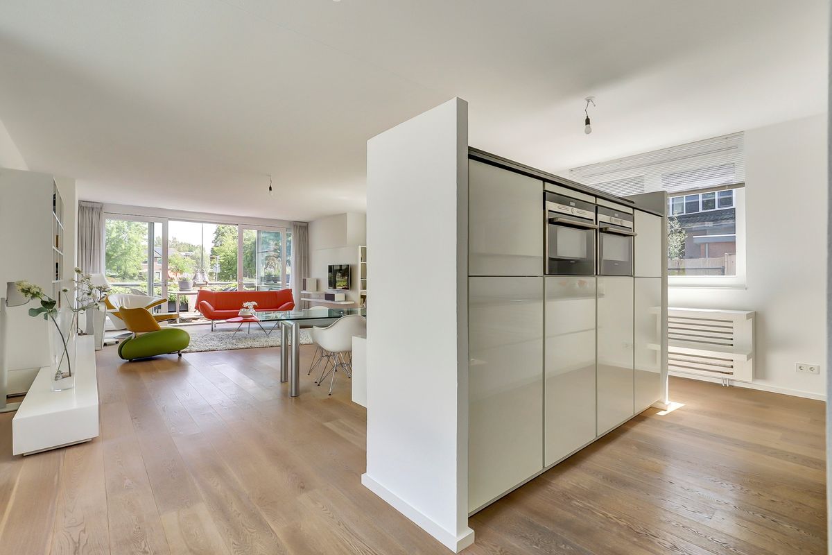 Dit appartement is bewoont door een architect en volledig voorzien van maatwerk kasten. Werkelijk alles klopt in dit appartement. De keuken is hoogwaardig uitgevoerd en voorzien van topkwaliteit inbouwapparatuur welke (helaas) zeer weinig gebruikt is. Er ligt een schitterende blank eiken vloer. Ook in de ruime badkamer is aan alles gedacht. Er is een royale inloopdouche, een ligbad, een dubbele wastafel voorzien van wastafelmeubel en een tweede zwevend toilet. Uiteraard ligt er in de badkamer vloerverwarming. De binnenkant van het appartement is recent volledig geschilderd.