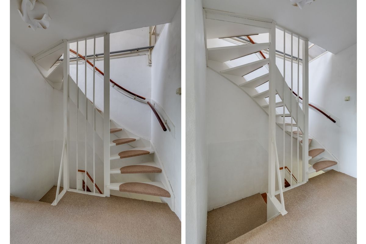 Via een vaste houten trap komt u op de bovenste verdieping. Hier vindt u de voorzolder (6,10 m. x 2,20 m.) met de aansluitingen voor uw wasapparatuur en de cv-ketel (Nefit Ecomline 1999). Er hangt een Velux dakraam v.v. dubbel glas.